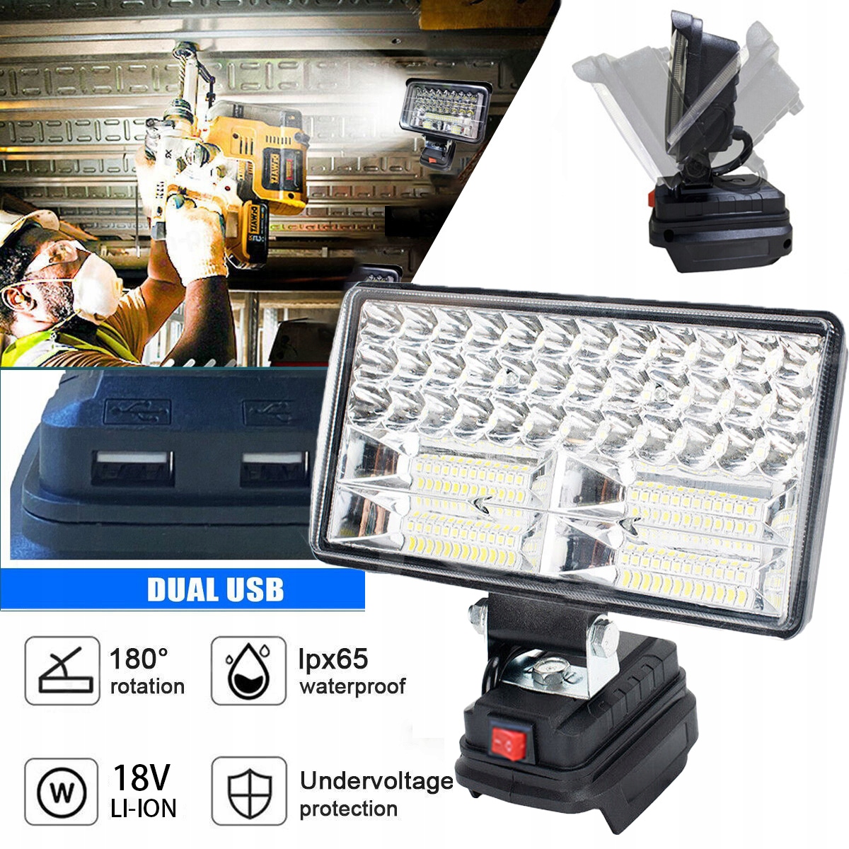ЛАМПА ДЛЯ MAKITA 18V галогенна РОБОЧА ЛАМПА ФОХАР + 2X USB 8 ДЮЙМОВ 84 LED 90W