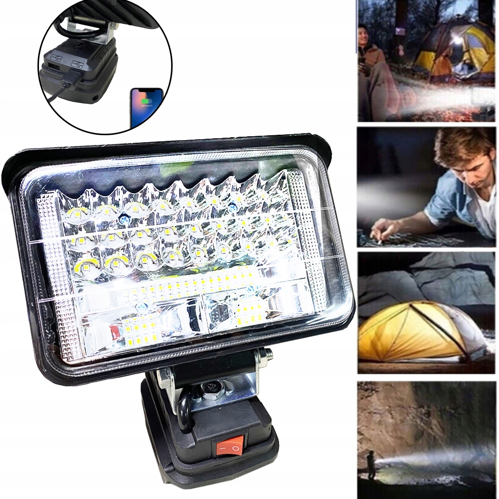 ЛАМПА ДЛЯ MAKITA 18V галогенна РОБОЧА ЛАМПА ФОХАР + 2X USB 5 ДЮЙМОВ 48LED 48W