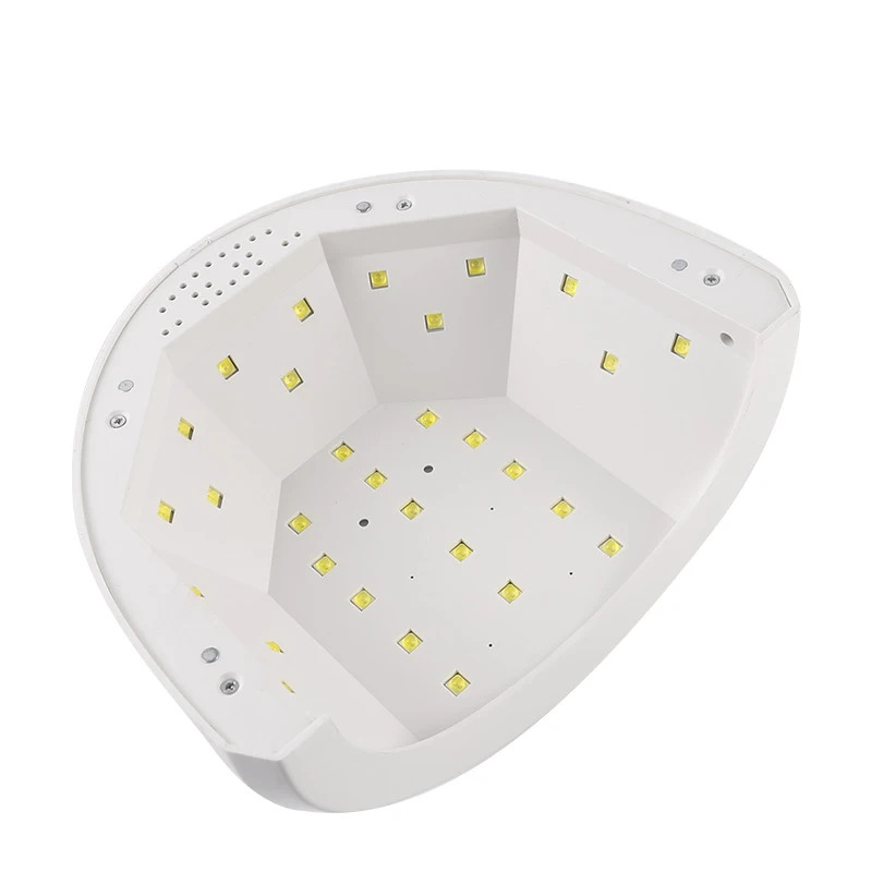 Лампа має дзеркальне дно, яке додатково відображає і розсіює світло світлодіодів. Завдяки цьому він досягає навіть важкодоступних місць з боків нігтів і кутикул. Тоді ми можемо бути впевнені, що гібридний лак або гель затвердіє навіть у найчутливіших місцях.