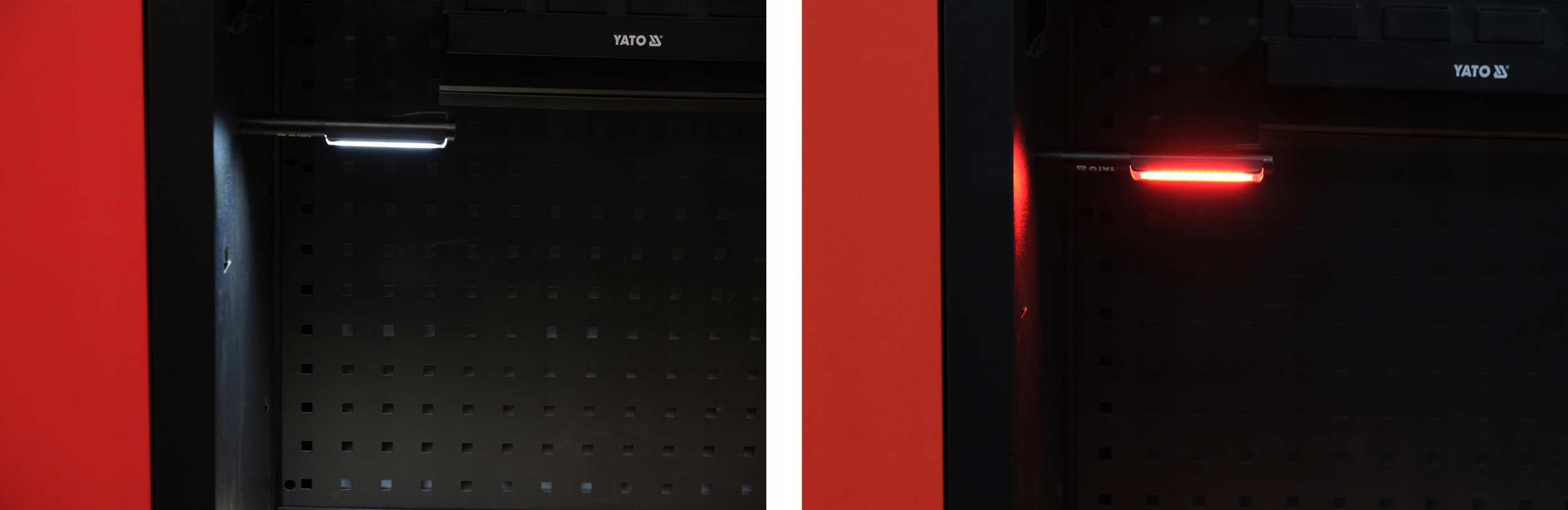 Алюмінієвий інспекційний ліхтарик YATO з 3 режимами роботи, включаючи червону сигнальну лампу. Діод COB забезпечує потужне розсіяне світло 200 лм.