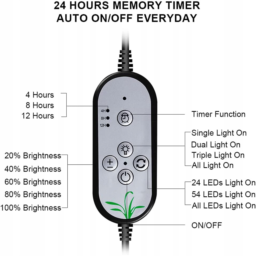 *Автоматичний таймер увімкнення/вимкнення: ці світлодіодні світильники для рослин мають три режими роботи часу: 4/8/12 годин, ви можете встановити його один раз, і він буде щодня автоматично вмикатися та вимикатися.
