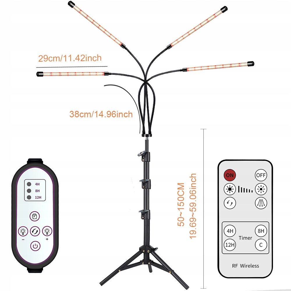 * Оновіть лампу з довшою трубкою та більше світлодіодів: лампа для вирощування рослин складається з 49 світлодіодних кульок із високою інтенсивністю, енергозбереженням і тривалим терміном служби кожна довша трубка діаметром 29 см/11,42 дюйма. Одна підставка для освітлення рослин розміром 3/4/5 складається зі світлодіодних намистин 147/196/245 із довшою гусячою шиєю на 38 см/14,96 дюйма та регульованою підставкою на 50–150 см/19,69–59,06 дюйма, що забезпечує ширше покриття.