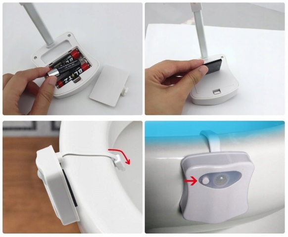 Лампа підсвічування для унітазу -практичний гаджет. Він освітлює унітаз, щоб нам не довелося вмикати яскраве, часто яскраве світло у ванній на ніч. Має датчик руху, який реагує, коли поруч знаходиться людина. Лампа ефективна і випромінює яскраве барвисте світло. Світло можна повністю вимкнути за допомогою кнопки.