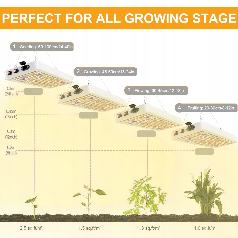 * Високоякісні матеріали: лампа для росту рослин добре відводить тепло, має міцність і хороший контроль температури. Корпус із АБС-пластику забезпечує міцність вашої легкої дошки. Для висоти приблизно 8–30 дюймів рекомендовано світлове табло заввишки 2 фути.