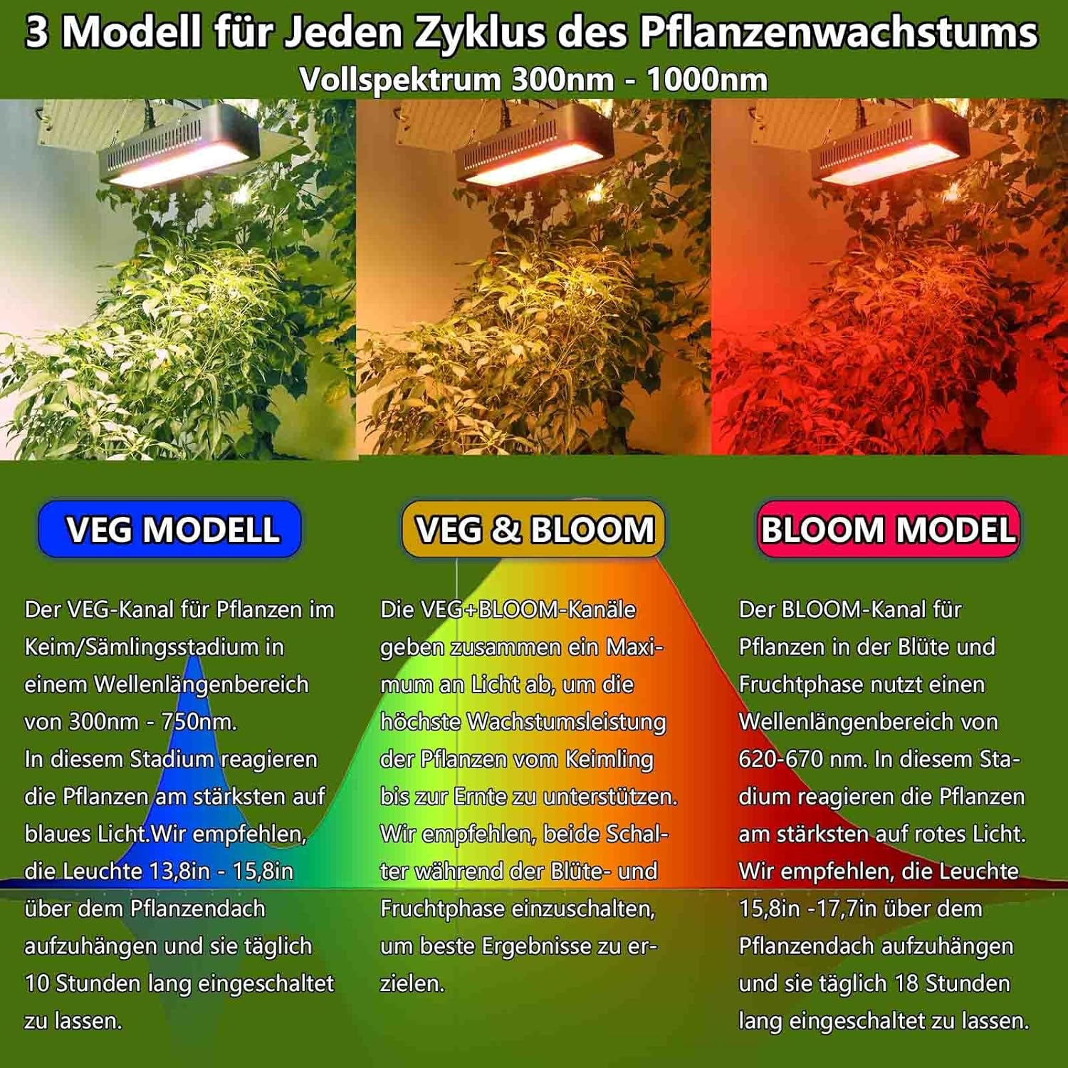3 режими освітлення: 3 типи режимів освітлення для вирощування в кімнатах. Ви можете вибрати 3 кольорові режими (овочі, цвітіння, повний спектр) для сприяння відсутності природного сонячного світла та сприяння росту рослин на всіх етапах.