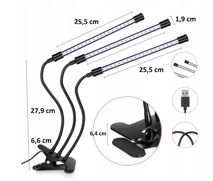 3 x ЛАМПА ДЛЯ ВИРОЩУВАННЯ РОСЛИН
