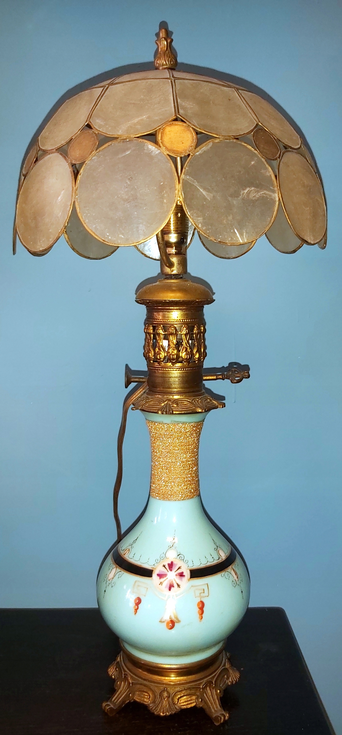 ЛАМПА ФАРФОРОВА ЛАМПА ЛАТУНЬ ПЕРЛАМУТРОВА МАСА