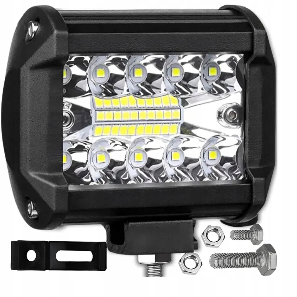 Світлодіодна робоча лампа з 20 діодами 60W є надійним джерелом світла, ідеально підходить для роботи в майстерні, у полі та під час руху вночі. Завдяки куту променя 60° він освітлює велику площу, забезпечуючи комфортну та безпечну роботу навіть у темряві. Яскраве, холодне світло кольору 6000K і світловий потік 10800 лм забезпечують чудову видимість. Лампа захищена від атмосферних впливів (IP67), що робить їїідеальною для зовнішнього застосування - від сільськогосподарської техніки до кемпінгу.