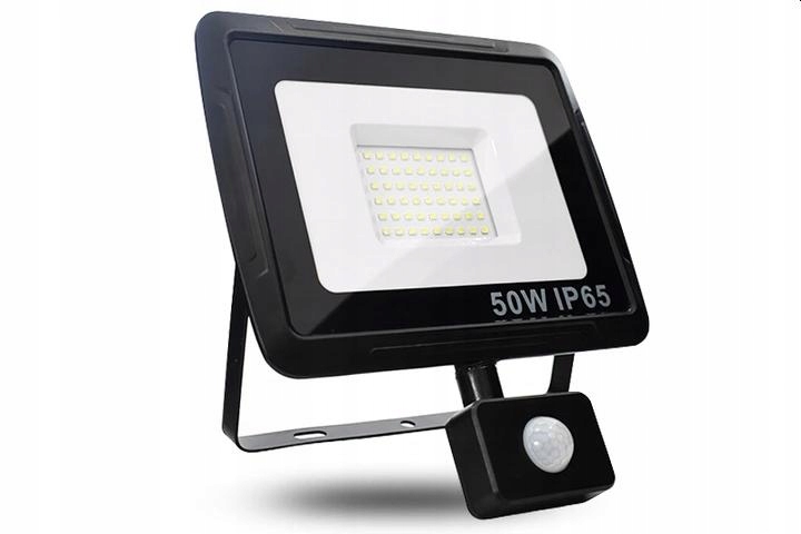 Світлодіодний прожектор/рефлектор потужністю 50 Вт, класом герметичності IP65 і нейтральним білим кольором світла 4500K з датчиком руху та сутінків.