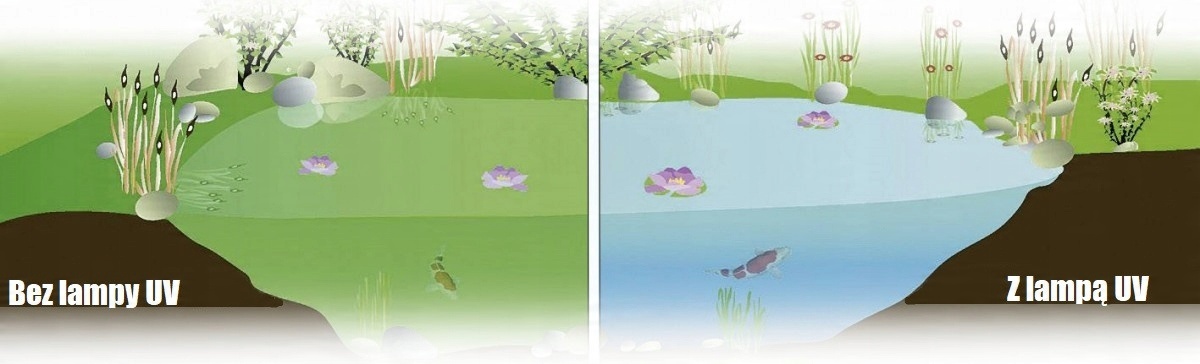 Зовнішня ультрафіолетова лампа потужністю 36 Вт є цінним помічником у видаленні водоростей із вашого ставка. Гарантує високу чистоту води. УФ-випромінювання знищує одноклітинні організми – водорості та паразитів. Додаткову інформацію можна знайти в нашій статті про вибір УФ-лампи.