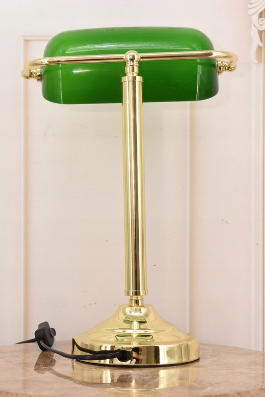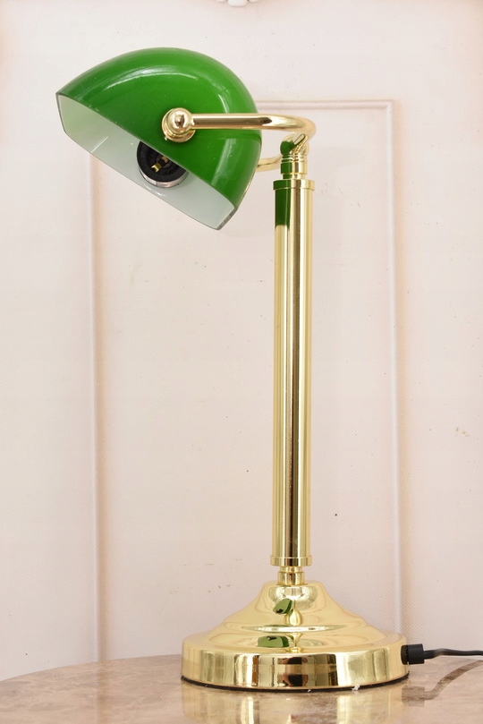 латунної основи та скляної зеленої світильника з характерною прямокутною формою є ознакою популярної лампи банкіра. Ця надзвичайно атмосферна та елегантна лампа також забезпечить дуже функціональне та здорове освітлення.