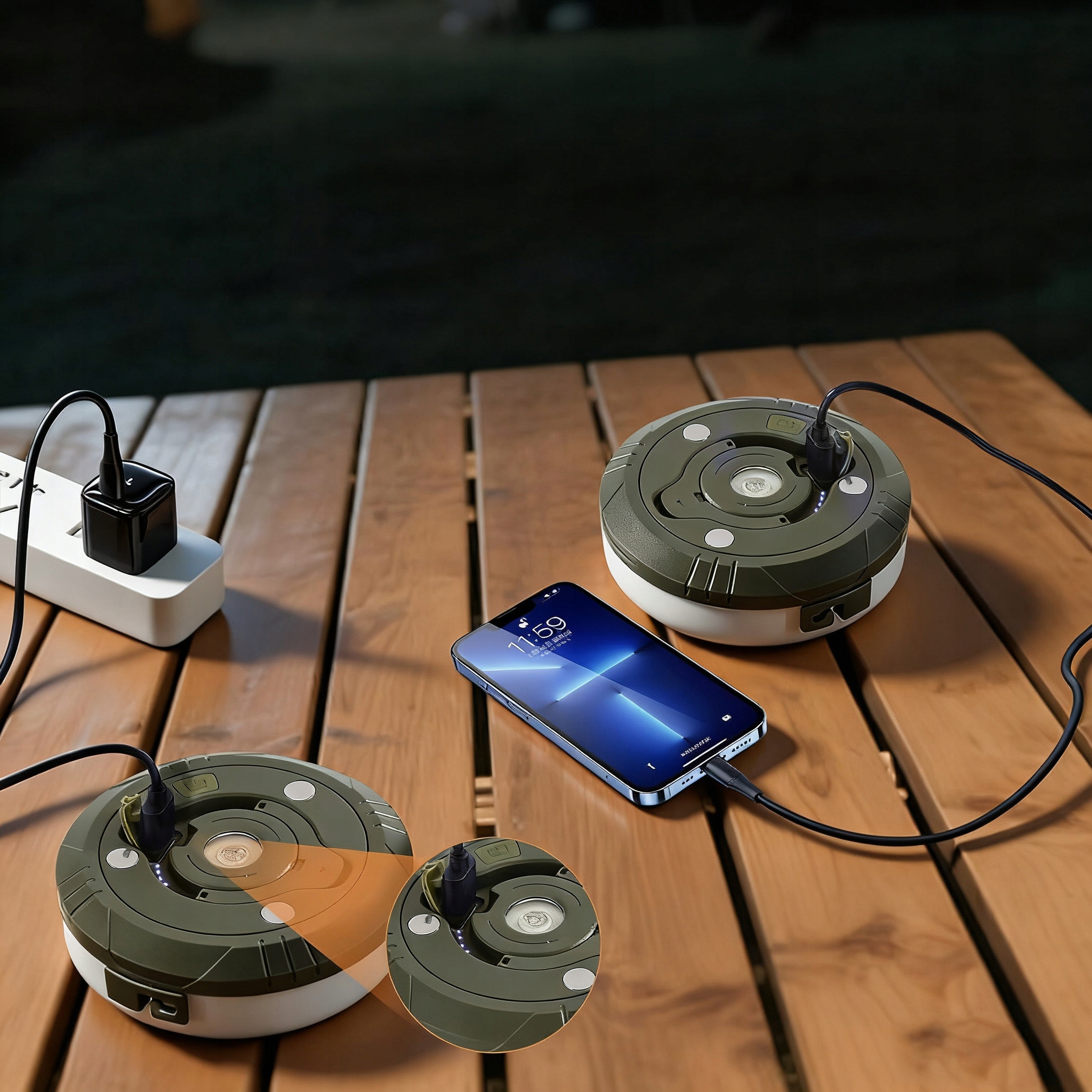 💡USB-C заряджання та індикатор заряджання: цей перезаряджуваний світильник має вбудовану батарею ємністю 2000 мАг, яка забезпечує від 7 до 12 годин безперервної роботи після повного заряду, залежно від вибраного режиму. Під час заряджання індикатор живлення блимає синім, щоб чітко вказувати на стан заряджання. Цей кемпінговий ліхтарик також можна використовувати як зарядний пристрій, щоб зручно заряджати телефон під час кемпінгу чи походу.