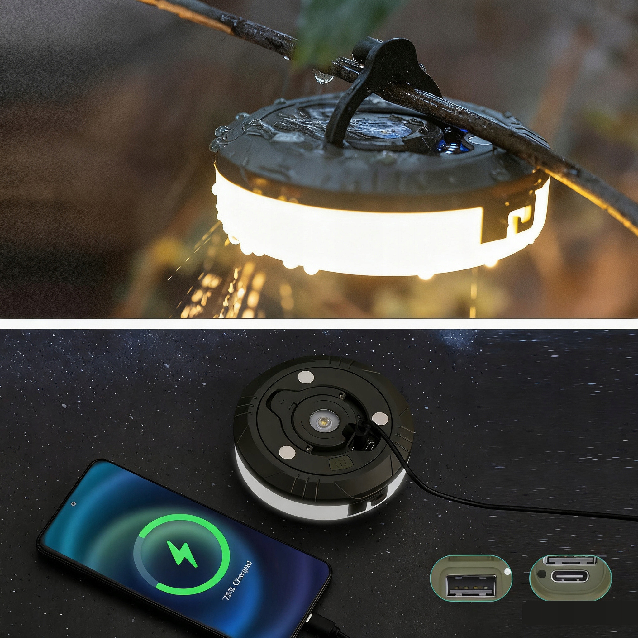 💡Водостійкий і універсальний: цей кемпінговий ліхтарик є водонепроникним (IPX4) і добре працює навіть у вологих умовах. Цей наметовий світильник ідеально підходить не тільки для кемпінгових наметів, але й для будинків, патіо, кемперів і заручин, створюючи романтичну атмосферу. Його можна навіть використовувати як аварійну лампу в надзвичайних ситуаціях, таких як відключення електроенергії та стихійні лиха.