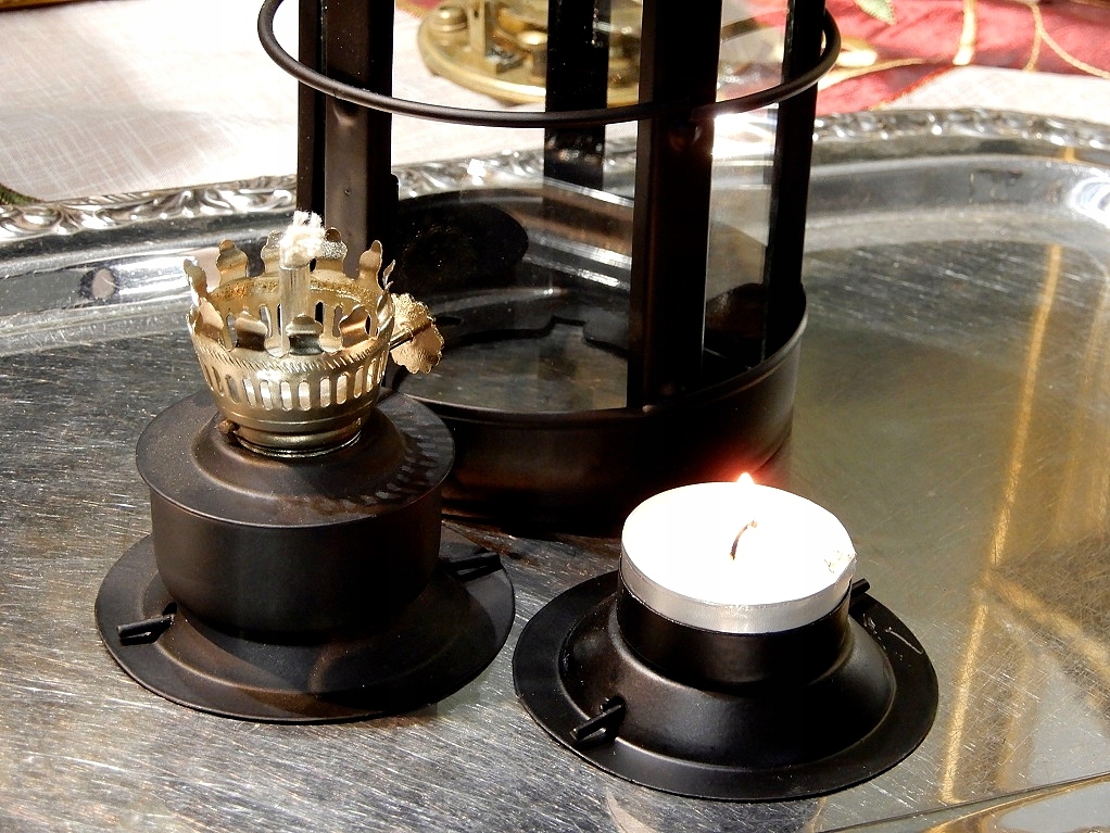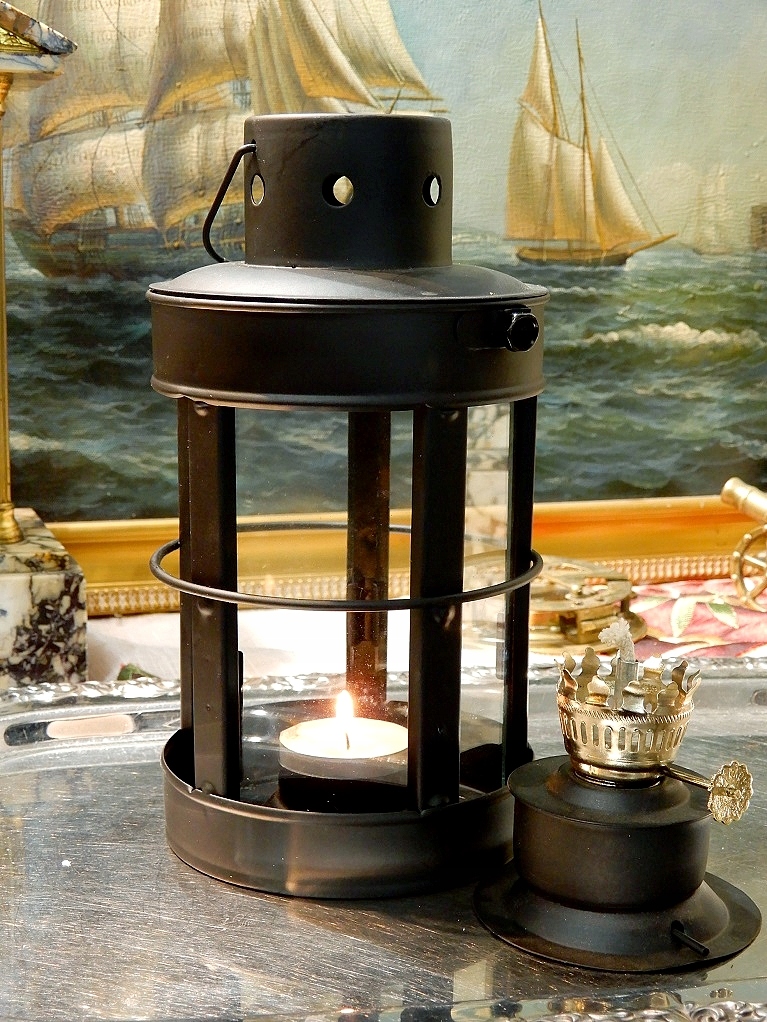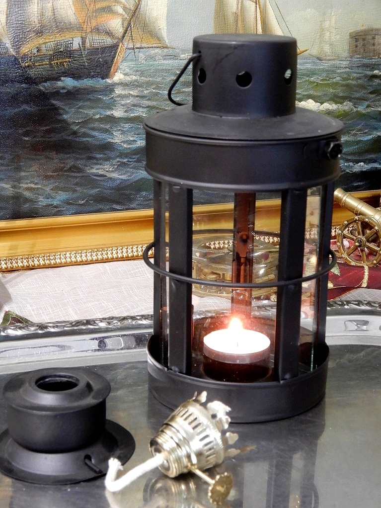 Усередині є місце для свічки, а також ми додаємо пальник із регульованим ґнотом і висотою полум’я. Верхня частина відкручується і в отвір заливається лампове масло. Пальник знімається знизу дуже просто.