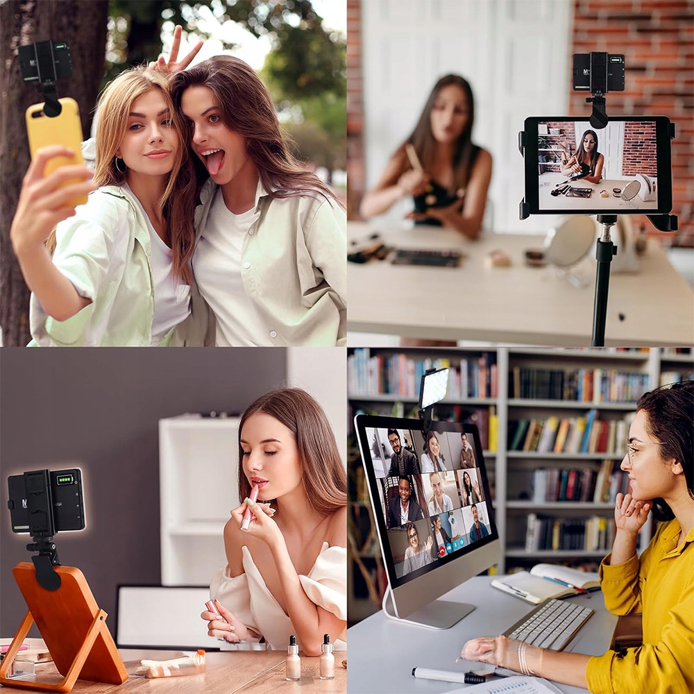 - - оснащений двома кліпами, передньою та задньою затискачем, ідеально сумісними з мобільними телефонами, планшетами, ноутбуками тощо. Стандартний гвинт 1/4 дюйма внизу підходить для камер та штативів. Кишенькові гроші, тож ви можете легко носити їх із собою, щоб забезпечити ідеальне освітлення для кожного пострілу. Ідеально підходить для прямої трансляції, селфі, макіяжу, фотографії, зустрічей, відеозаписів тощо.