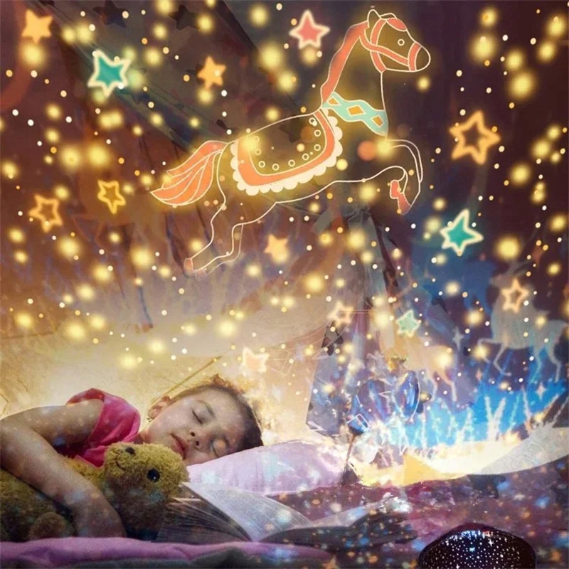 Starly Stars Projector - ідеальний пристрій з універсальним використанням, забезпечуючи надзвичайні візуальні та легкі ефекти . Це чудова іграшка, яка дозволяє легко створити прекрасний, барвистий світ у кімнаті . Набір включає аж шість обертових фільмів з різними тематичними мотивами, що, безумовно, дозволить вам знайти смак і хлопців, і дівчат. Зоряний проектор - це ідеальний подарунок для всіх випадків! Серед фільмів є день народження, квітковий, космос, морський та тваринний мотив. Повільно рухається образ, що має заспокійливий ефект і створює дуже приємну, затишну атмосферу . Лампа має чотири градуси температури освітлення : білий, помаранчевий, синій та рідкий змінний. Крім того, ви також можете вибрати один із трьох режимів яскравості . Starly також ідеальний як нічна лампа для дітей, гаджет для вечірок або як щоденна лампа вітальні , яка дасть інтер'єру унікальну атмосферу. Після надягання проектора обкладинки світло, що випущено пристроєм, буде приємно розповсюджене, що дуже зручно для очей. Виберіть тип світла, який вам найбільше підходить, і насолоджуйтесь ідеальним освітленням, де ви хочете- без необхідності використовувати електричну розетку або безперервну купівлю акумулятора. 4 Акумулятор заряджається за допомогою USB -кабелю, включеного в набір .