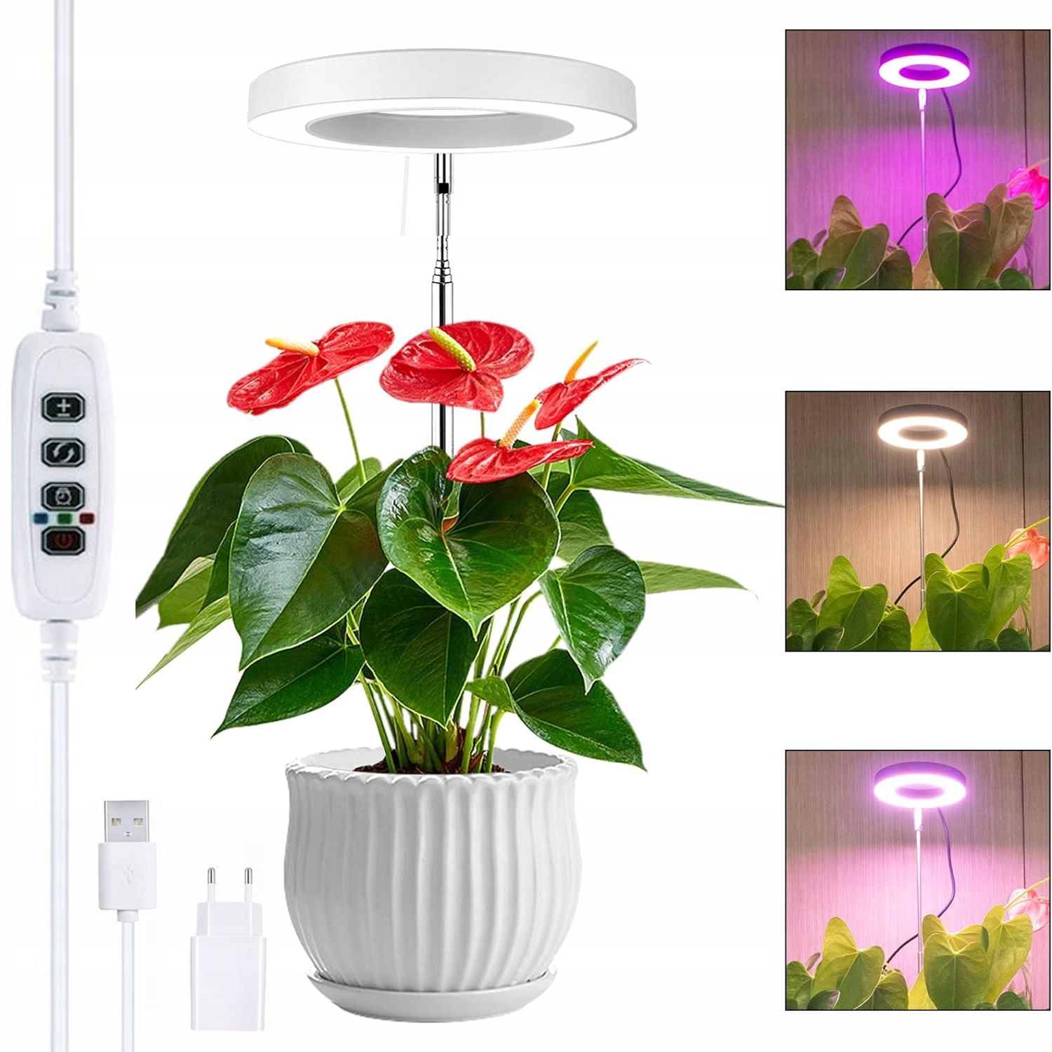 - Світло для росту працює з більшістю пристроїв із підтримкою USB , як-от джерела живлення, зарядні пристрої USB, блоки живлення, монітори, настільні комп’ютери та ноутбуки