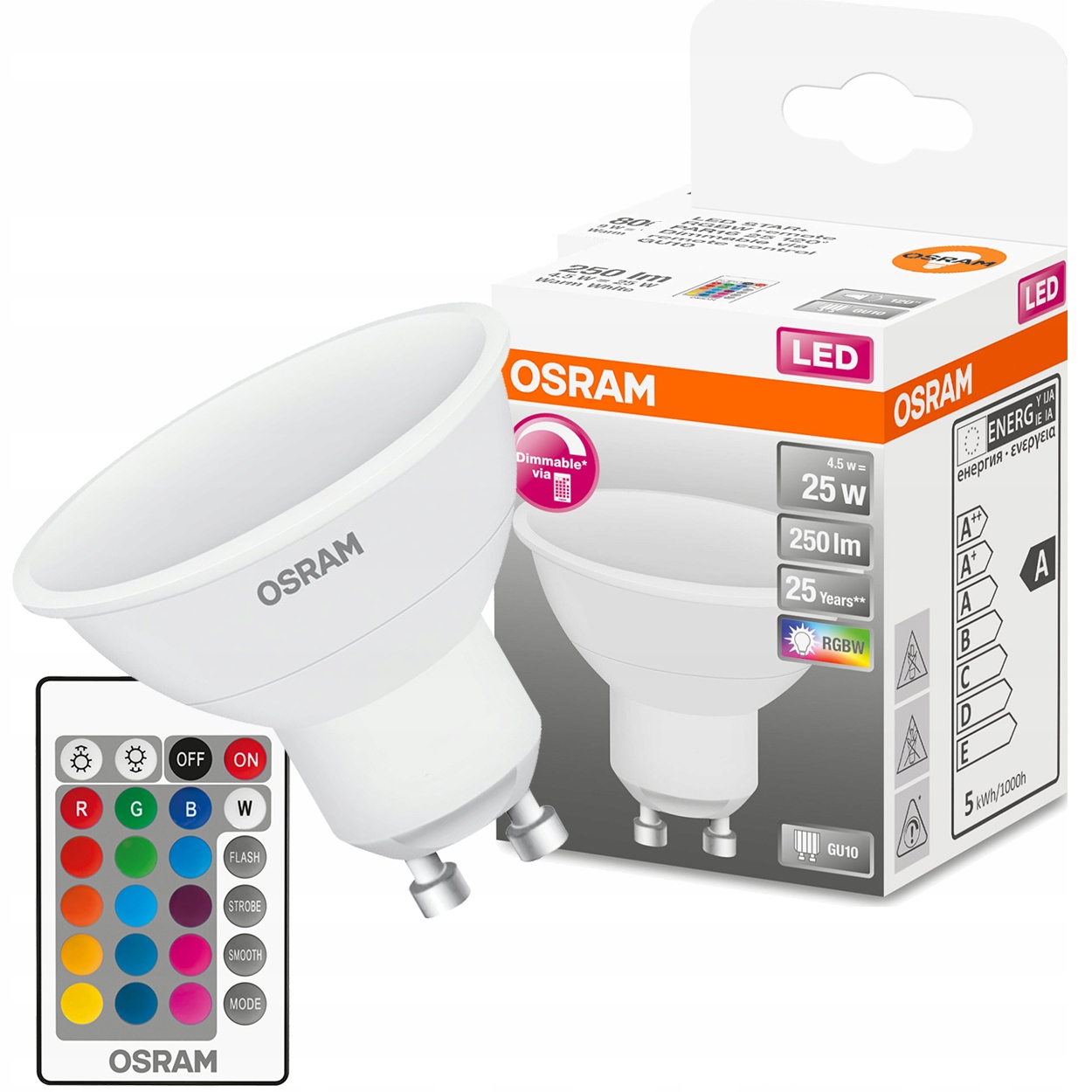 LED GU10 4,5W RGB + W 827 OSRAM + PILOT