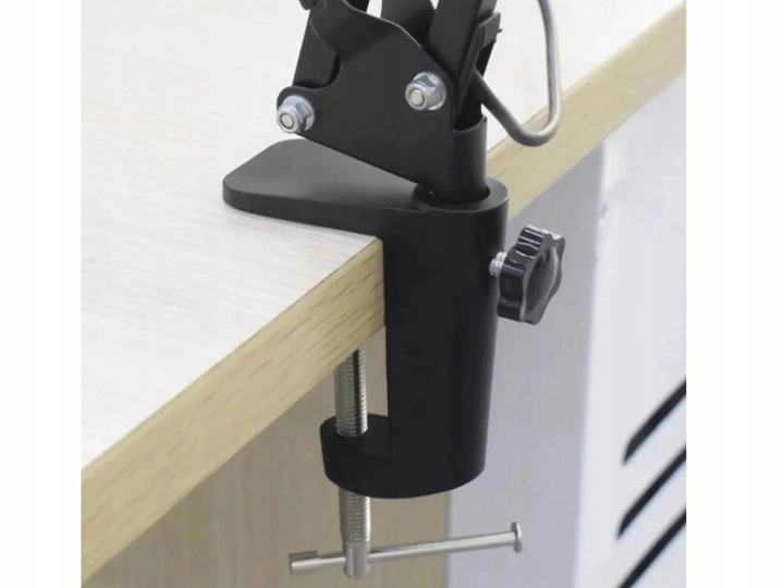 Лампа оснащена 2 шарнірами, які дозволяють чудово регулювати кут падіння світла. Він має кріплення, завдяки якому ми можемо прикріпити його до стільниці.