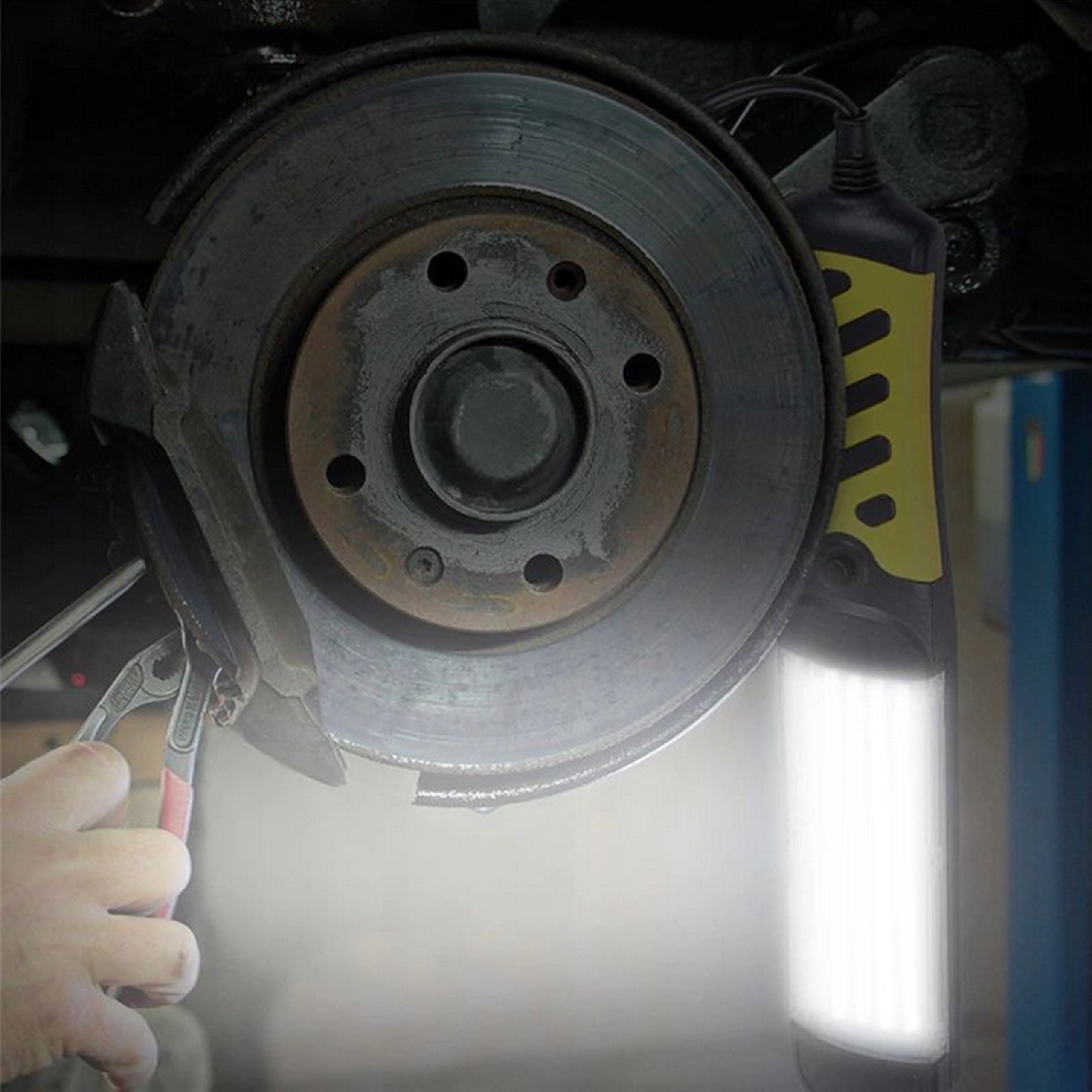 Перемикайте на ручці вимкнення ламп - без необхідності витягувати кабель з розетки. 4 Завдяки магніту на задній частині корпусу, лампу можна прикріпити до внутрішньої частини маски, коли ви змінюєте шини на колесах або де вам це потрібно!