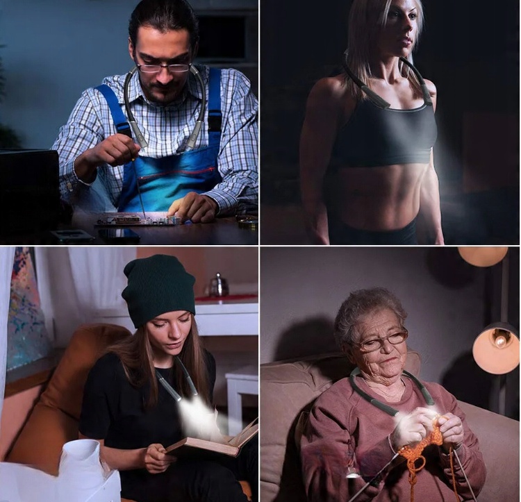Повісьте лампу для читання на шию, зігніть руки, щоб висвітлити те, що ви хочете. Щоб зробити читання зручнішим, ви можете змінити колір, інтенсивність освітлення або вимкнути одне з освітлення