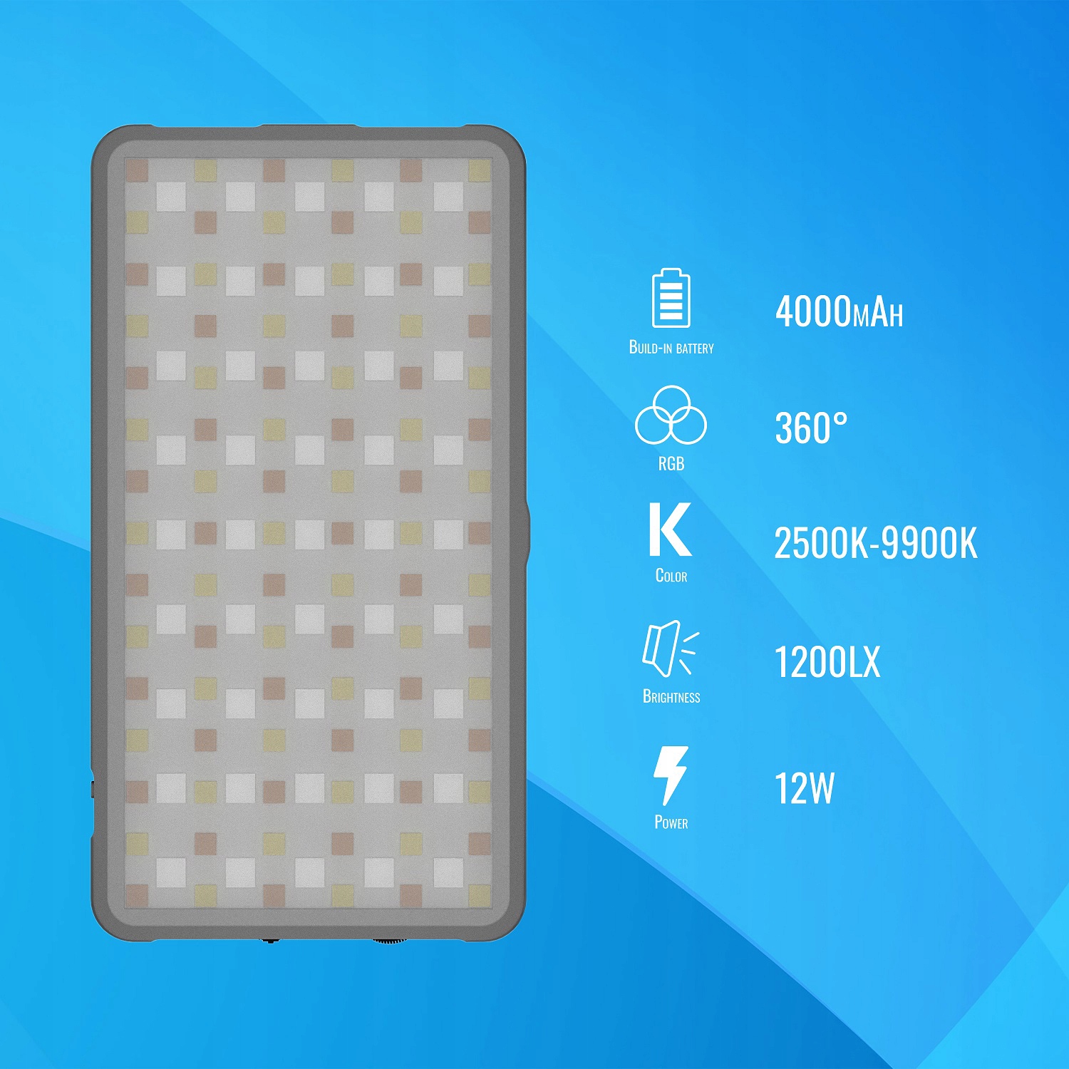 Світлодіодна лампа Newell RGB-W Rangha є незамінним пристроєм у сумці кожного режисера та фотографа. Висока потужність у неймовірно компактному корпусі означає, що ви можете використовувати його для освітлення знімального майданчика, фотозйомки продукту, вуличної чи макрозйомки. Його найбільшою перевагою є повний спектр RBG і білих діодів з можливістю плавної зміни насиченості і потужності. Список специфікацій закінчується вбудованим полімерним акумулятором і аж 21 тематичною програмою.
