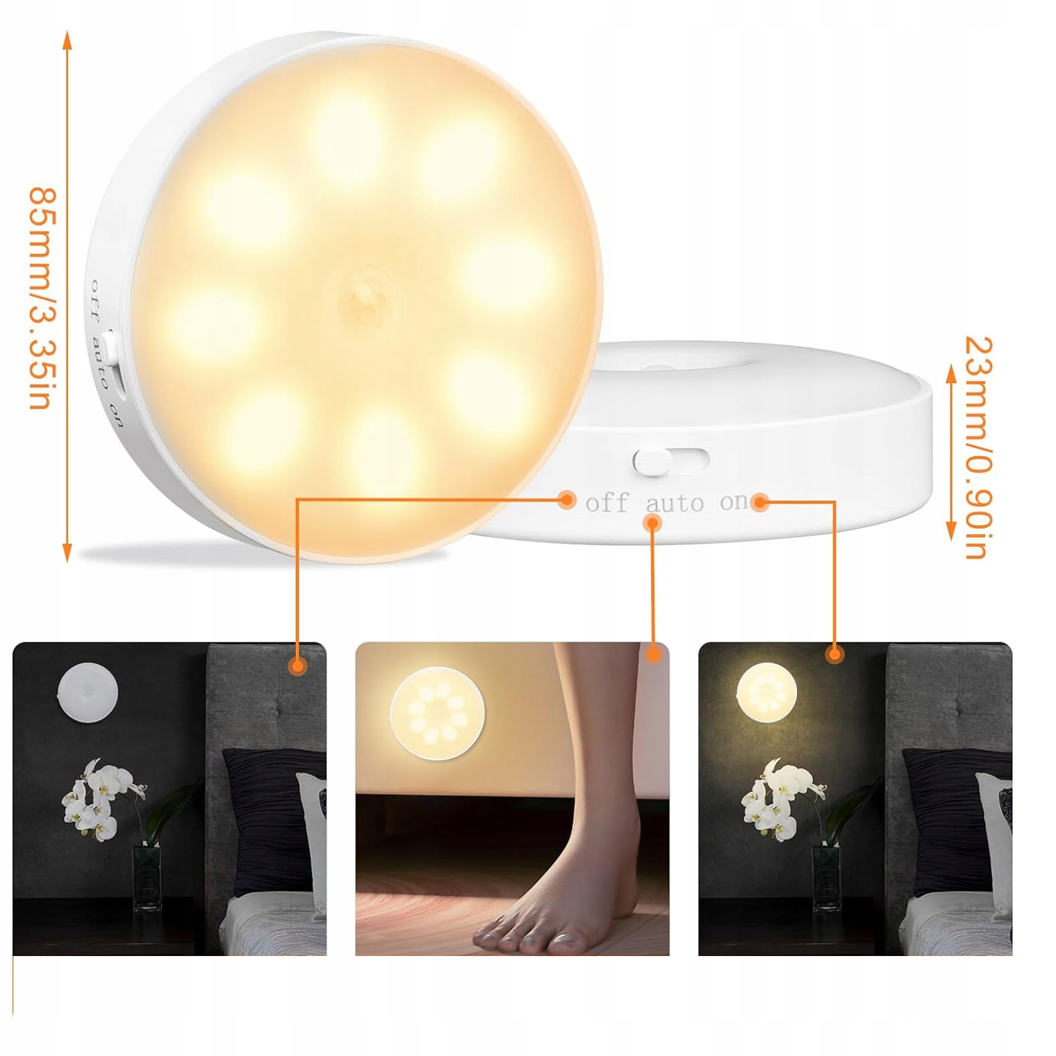 Lampa Nocna 8 LED Ze Czujnik Ruchu USB Dwukolorowe Światło Kinkiet 6szt