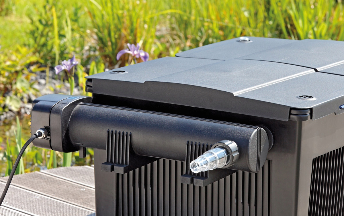 Пристрій постачається в комплекті з високоякісною ниткою розжарення UVC потужністю 36 Вт від Oase, що робить цей продукт ідеальним для: незарибнених ставків місткістю до 40 000 літрів, зариблених рибою місткістю 20 000 літрів, ставків з коропами коі місткістю 10 000 літрів.