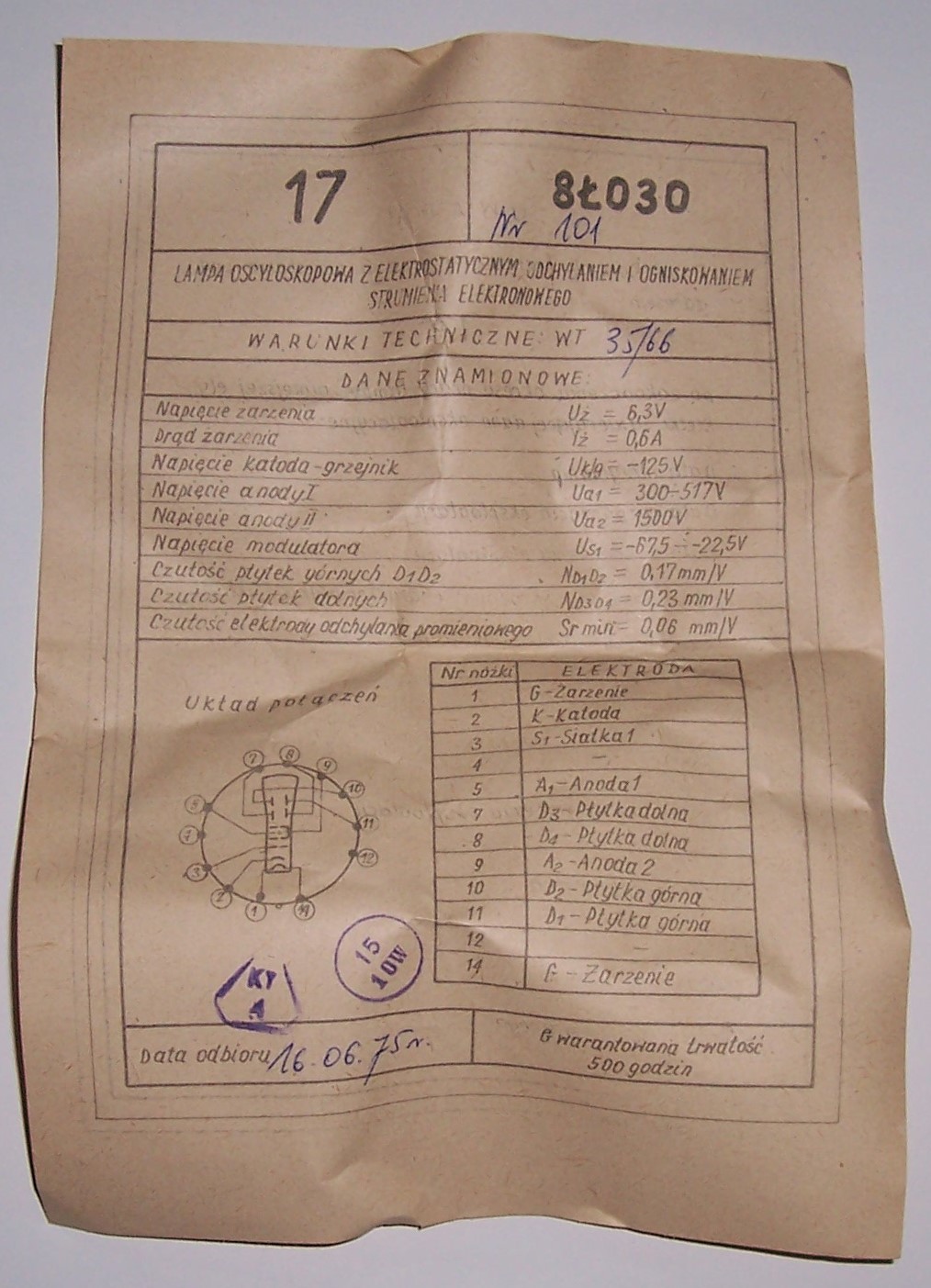 ЛАМПА ОСЦИЛОСКОПА 8ŁO30 НЕ ВИКОРИСТОВУЄТЬСЯ В КАРТІ
