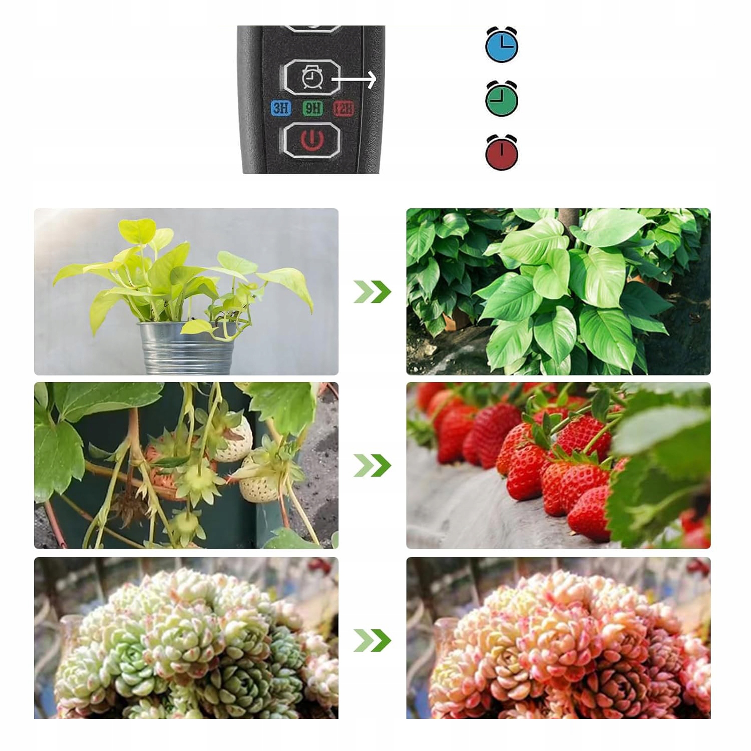 🌟 цей світлодіодний світильник має функцію пам’яті циклу, ви можете встановити таймер на 3/9/12 годин , за умови безперервного живлення освітлення для вирощування рослин автоматично вмикатиметься та вимикатиметься в той самий час щодня протягом 3/9/12 годин без необхідності ручного втручання