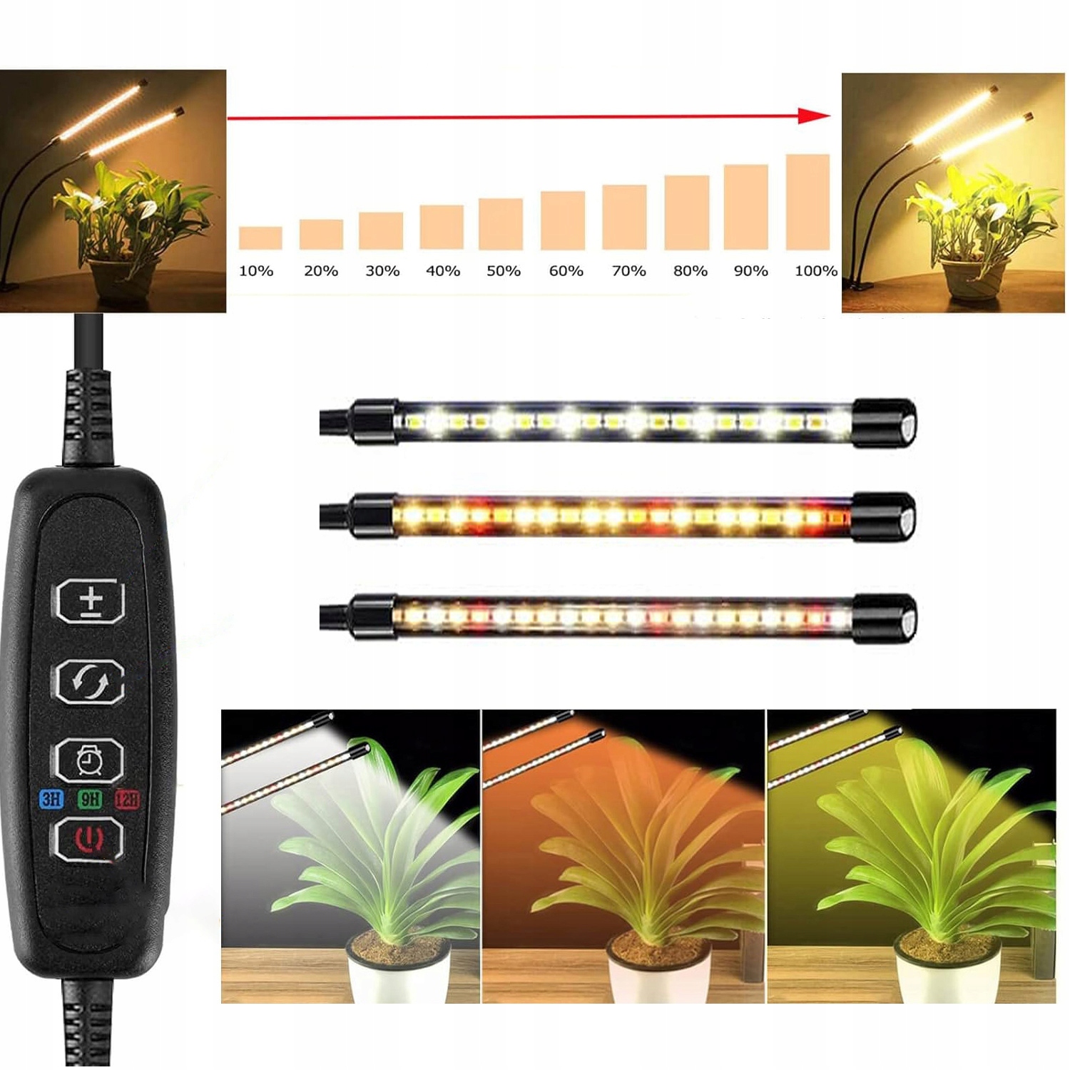 🌻 СВІТЛОДІОДНЕ ОСВІТЛЕННЯ РОСЛИН ПОВНИЙ СПЕКТР 3000 K / 5000 K / 660 NM СВІТЛО, ЩО ЗРОСТАЄ, 10 РІВНІВ ЗАТЕМНЕННЯ 3/9/12 ГОДИН ЧАС