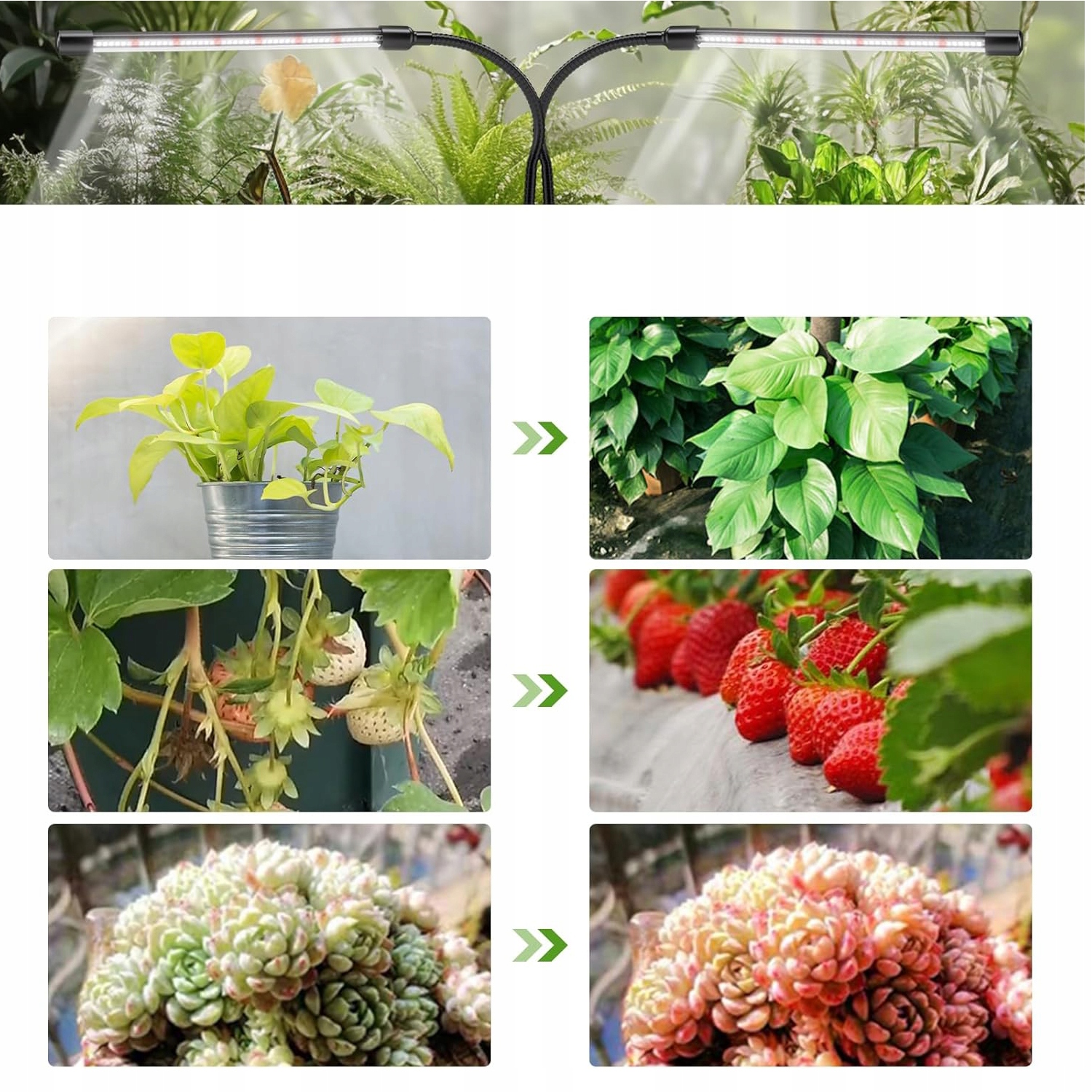 🌟 2 ГОЛОВКИ 10 Вт ЛАМПА ДЛЯ РОСТУ РОСЛИН 40LED (ОДНА ГОЛОВКА 20LED) (БІЛЕ СВІТЛО, ЖОВТЕ СВІТЛО, ЧЕРВОНЕ СВІТЛО) 10 РІВНІВ РЕГУЛЮВАННЯ ЯСКРАВОСТІ