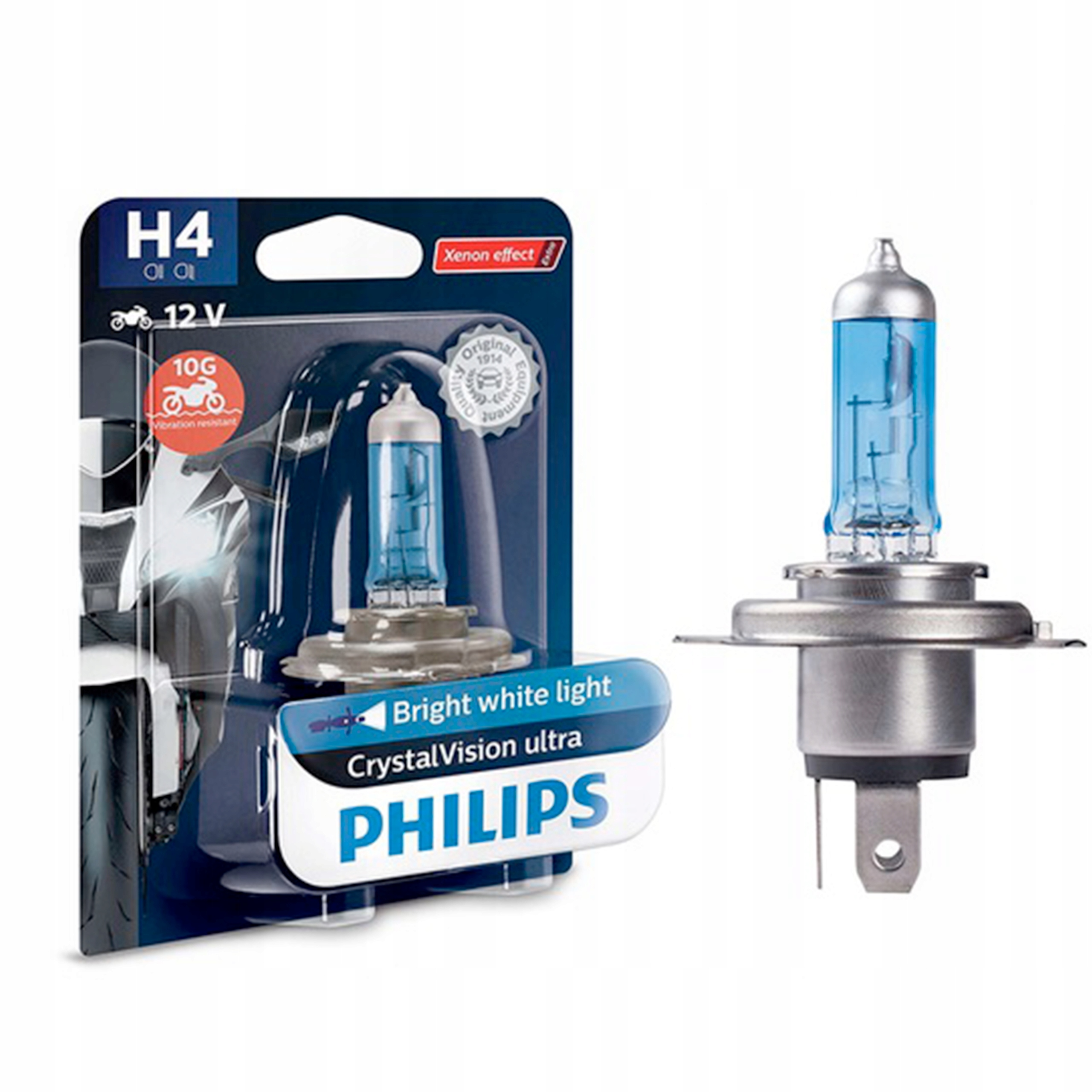 Відкрийте для себе лампи Philips CrystalVision Moto з найкращим синім ксеноновим ефектом. Сучасна технологія Gradient Coating™ створює стильний ксеноновий світловий ефект у фарах і випромінює потужне яскраве біле світло 3700K на дорогу.