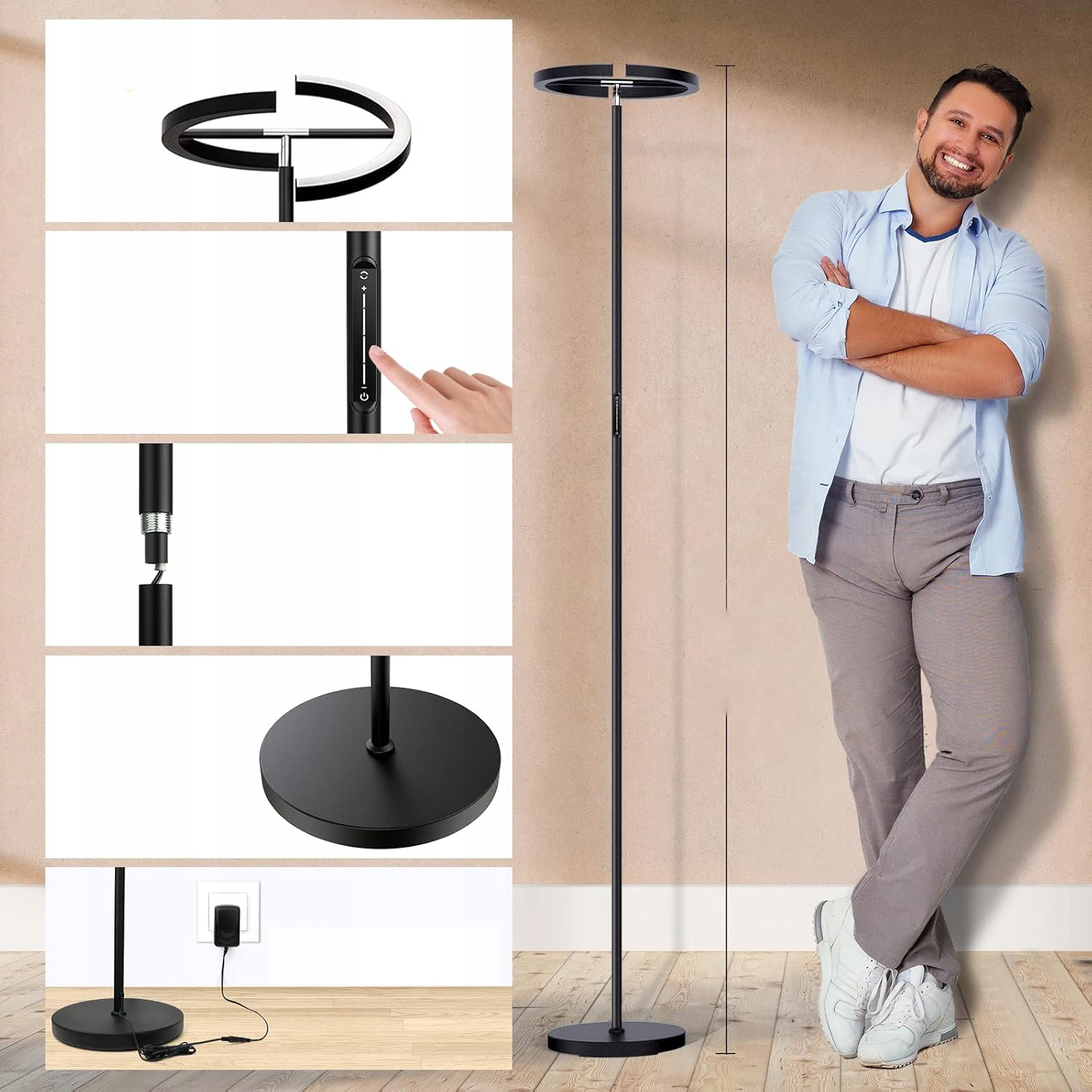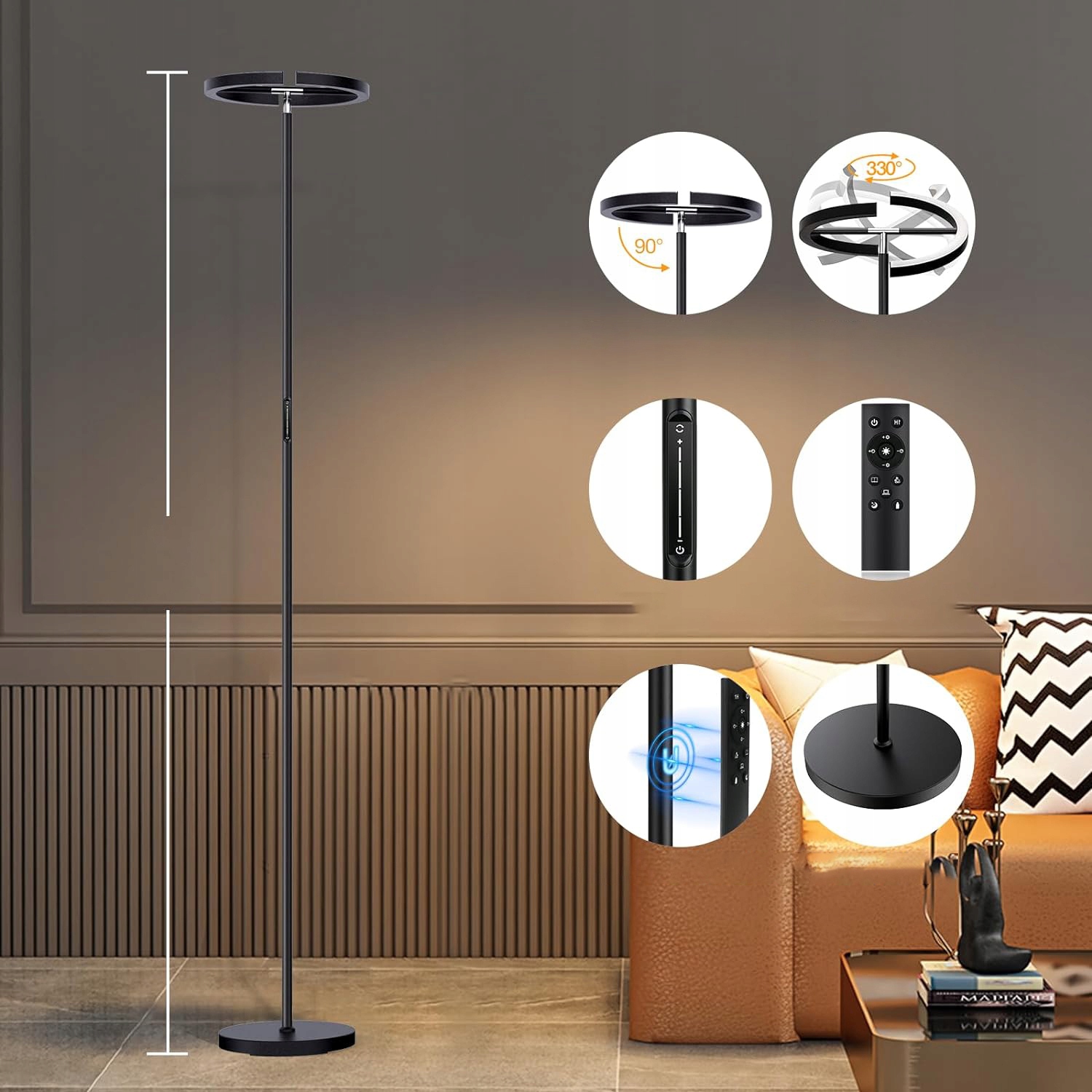 LAMPA PODŁOGOWA LED DOUBLE C CZARNA Z DOTYKIEM MAGNETYCZNYM I PILOTEM