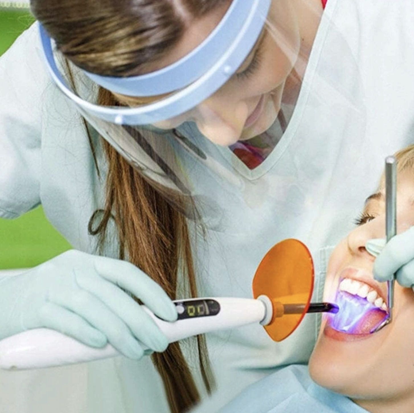 - Світлодіод у стоматологічному апараті випромінює інтенсивне світло з довжиною хвилі, оптимальною для твердіння стоматологічних матеріалів. Це забезпечує швидше та ефективніше затвердіння наповнювачів, лаків, адгезивів та інших матеріалів, які використовуються в лікуванні зубів.