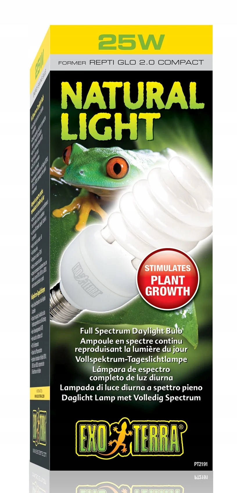 Exo Terra Natural Light — це лампа денного світла повного спектру з дуже високою ефективністю світла та високим індексом передачі кольору (98 CRI). Завдяки високій ефективності видимого світла та колірній температурі 6700 К лампочка для тераріумів Natural Light рекомендована як загальне джерело світла для всіх типів тераріумів. Висока світловіддача робить цю лампу придатною для тераріумів і ідеально підходить для тварин з меншими потребами в ультрафіолеті, таких як змії, амфібії (жаби, жаби та саламандри) і нічні тварини. Поєднайте цю лампу денного світла повного спектру з Reptile Exo Terra Reptile UVB100, Reptile UVB150 або Reptile UVB200, залежно від вимог вашої рептилії до ультрафіолету, щоб посилити природні умови сонячного світла.