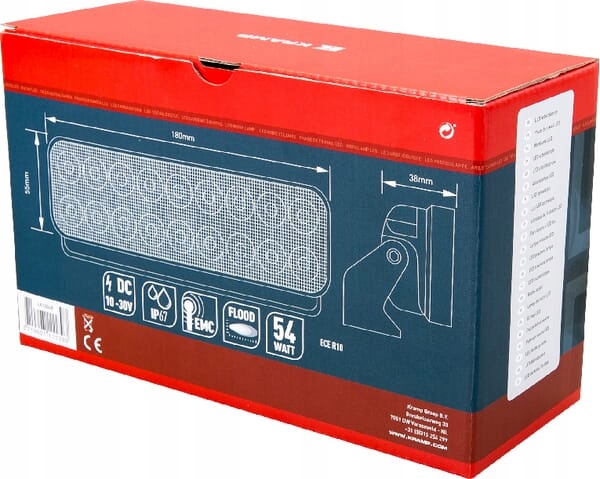 Лампа робоча світлодіодна, прямокутна, 54W 3960 lm 10/30V розсіяне світло 18 LED Kramp
