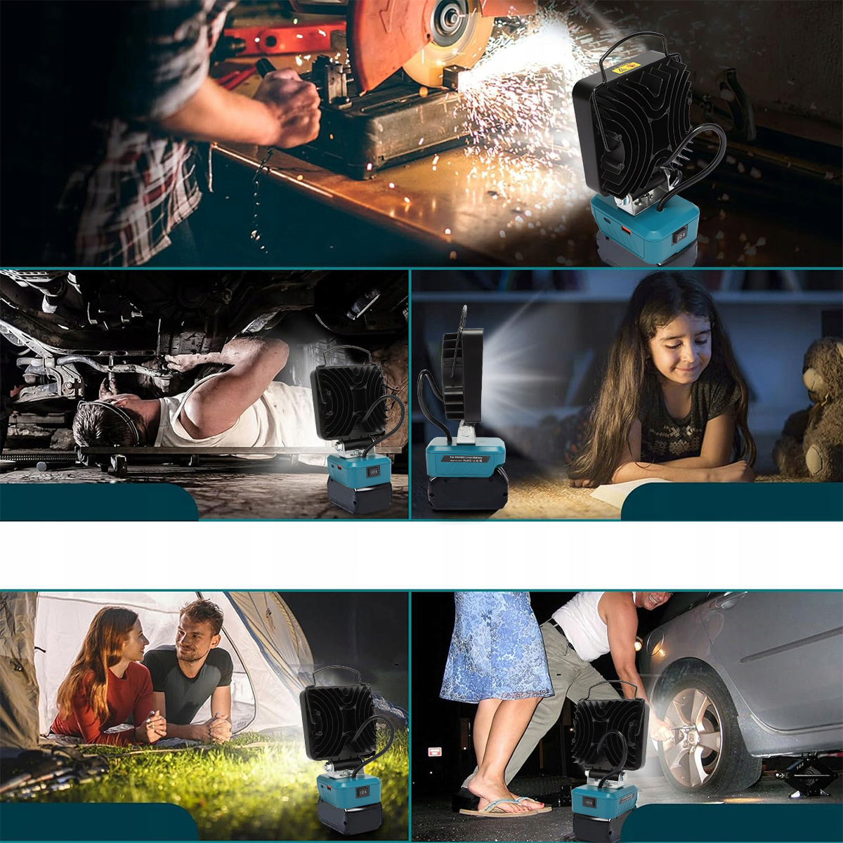● Регульована головка лампи: портативні акумуляторні робочі ліхтарі обертаються на 140°, тож за потреби ви можете спрямувати світло на певну робочу зону