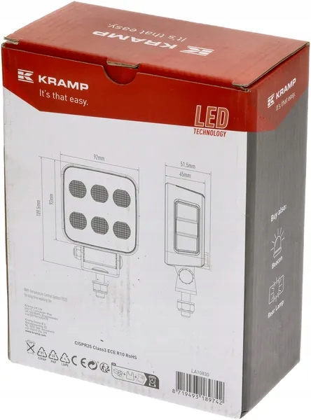 LA10830 - міцний світлодіодний робочий світильник від Kramp, ідеальний для використання в складних умовах - сільське господарство, будівництво, транспорт.
