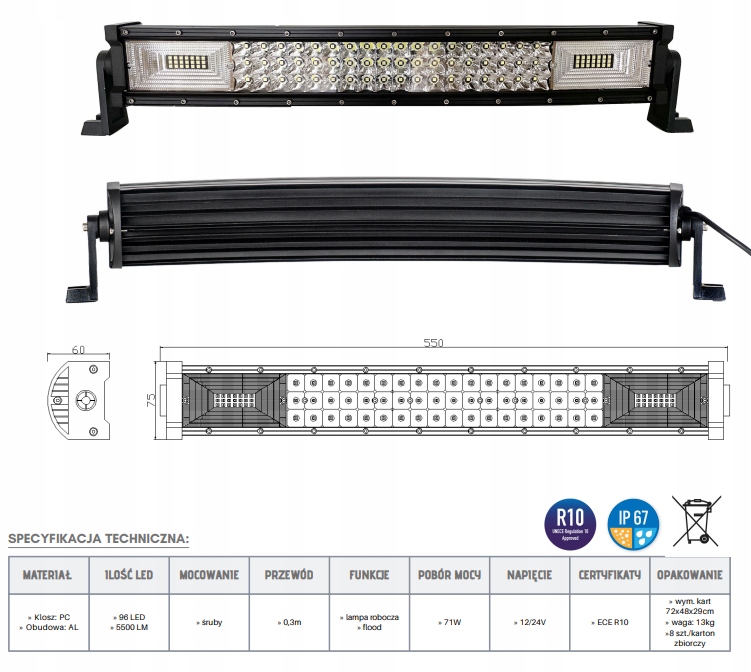 ЛАМПА РОБОЧА СВІТЛОДІОДНА ПАНЕЛЬ ARC 5500 LM FLOOD OFF ROAD ПОШУКОВА СМУГА 12-24V
