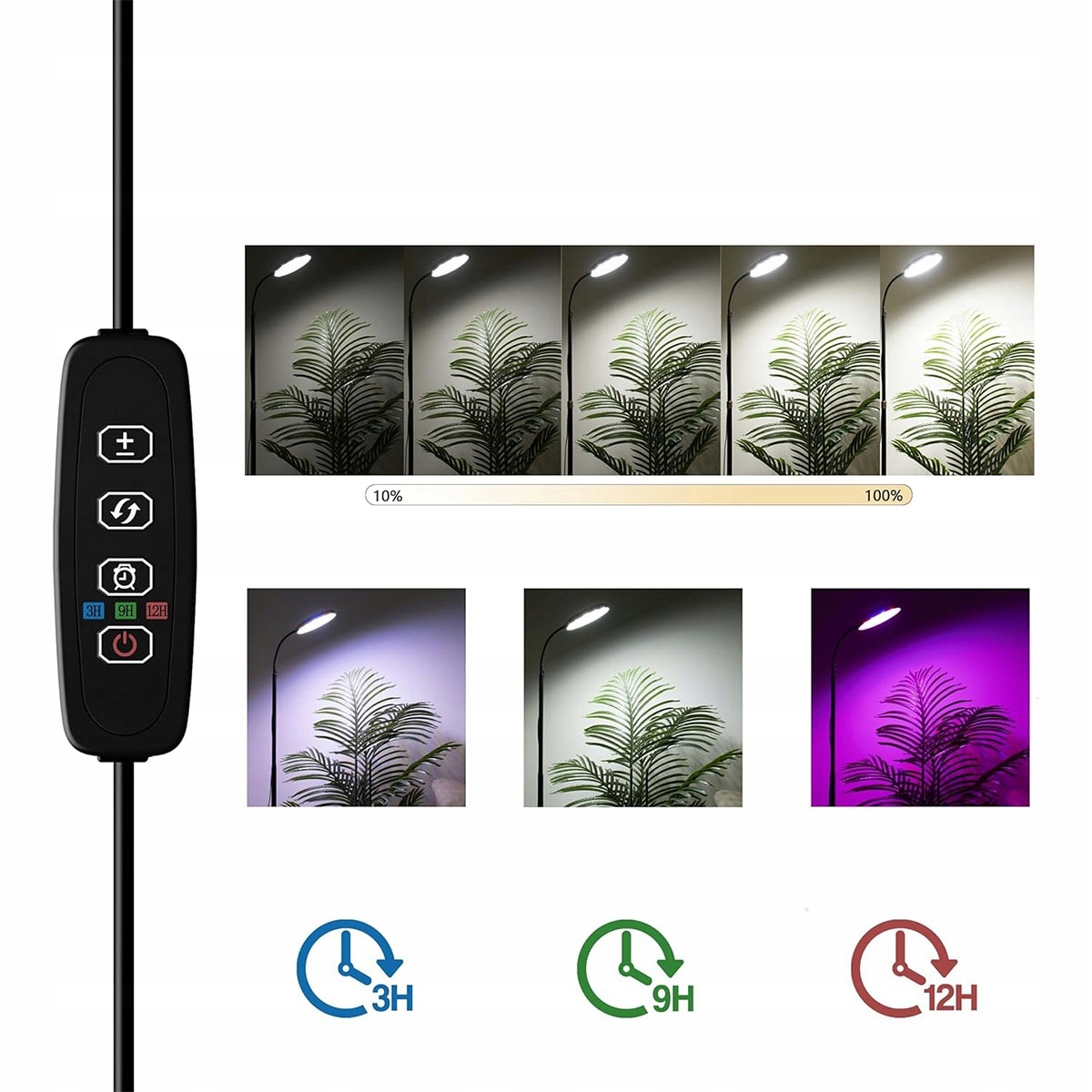➡️Установіть час (3 години/9 годин/12 годин), вам не потрібно вручну вмикати/вимикати світло для вирощування. Лампи для вирощування рослин полегшать вам догляд за рослинами на роботі чи у відпустці.