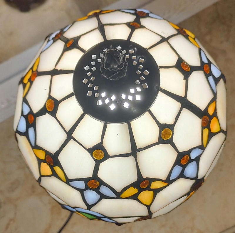 Світильник новий, не був у використанні, дуже елегантний. Виготовлений по-сучасному, привезений з Франції. На ньому представлений барвистий вітраж. Створить неповторну атмосферу в будь-якому приміщенні; стильний і сучасний.