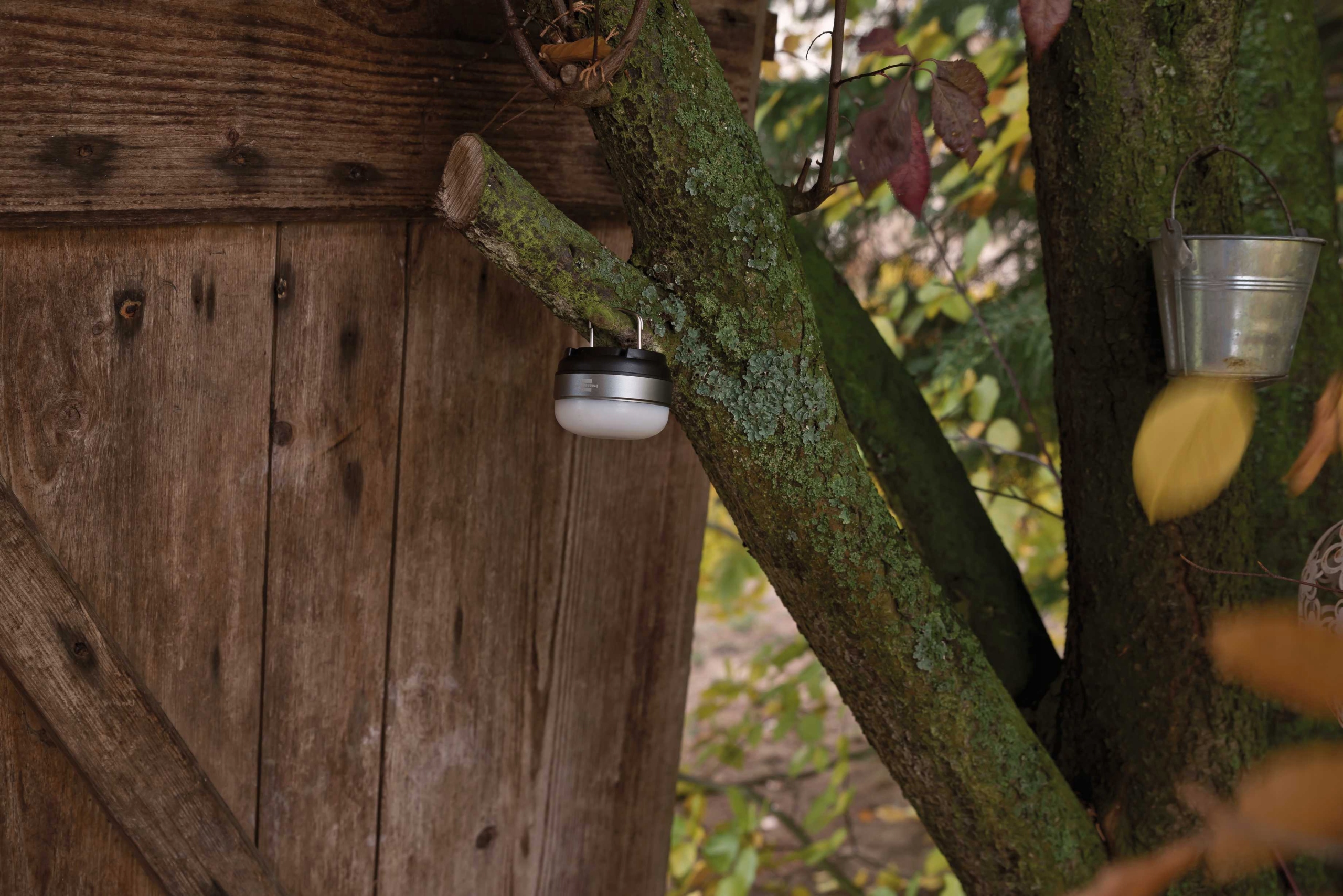 Вуличний світильник із широким спектром застосування. Завдяки невеликому розміру, заряду батареї та стійкості до травм і вологи він ідеально підходить для будь-яких заходів на природі. Магніти та гачки дозволяють закріпити його де завгодно, а три режими яскравості дозволяють регулювати світло відповідно до ваших потреб і ситуації. Яскраве освітлення поверхні без відблисків означає, що лампу також можна використовувати в приміщенні, наприклад, як освітлення для читання.