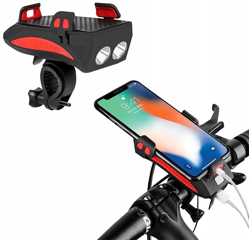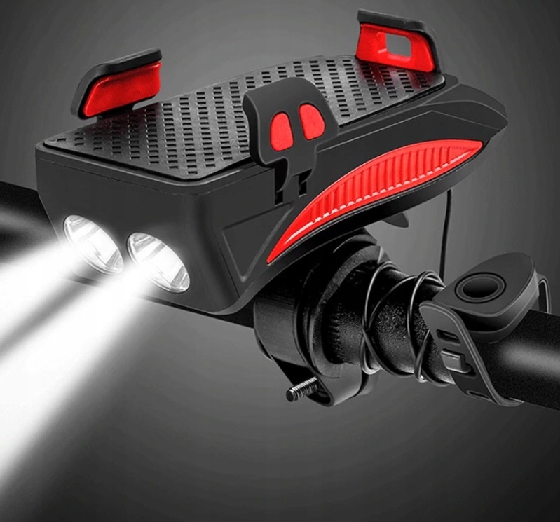 Велосипедна лампа 4in1 із звуковим сигналом, функцією Power Bank і тримачем для телефону. Завдяки потужним діодам значно підвищує безпеку дорожнього руху та покращує видимість.