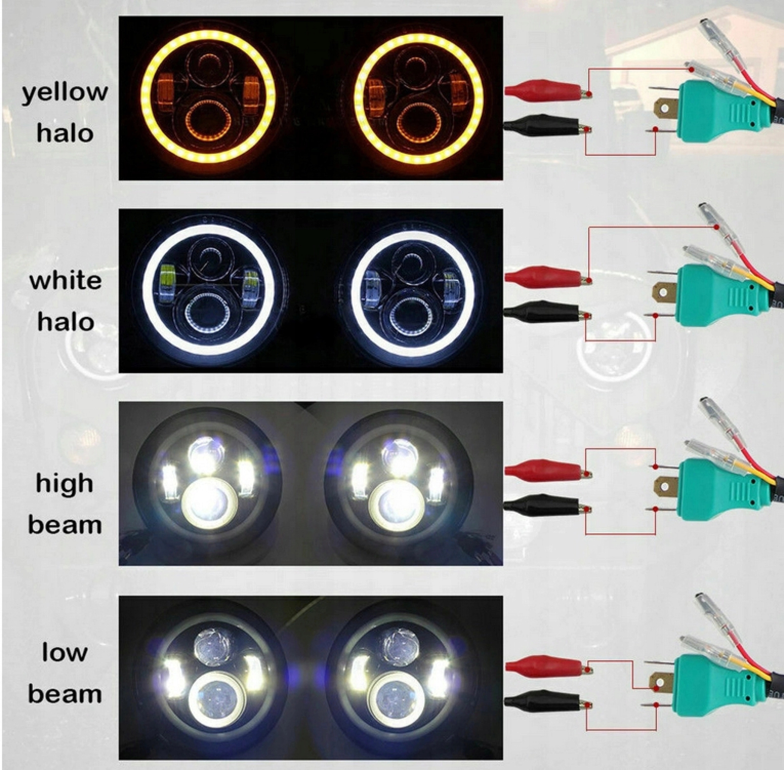 7-дюймові світлодіодні фари є багатофункціональними - Halo може бути білим або бурштиновим. Жовтий для покажчиків повороту; білий для ДХО.