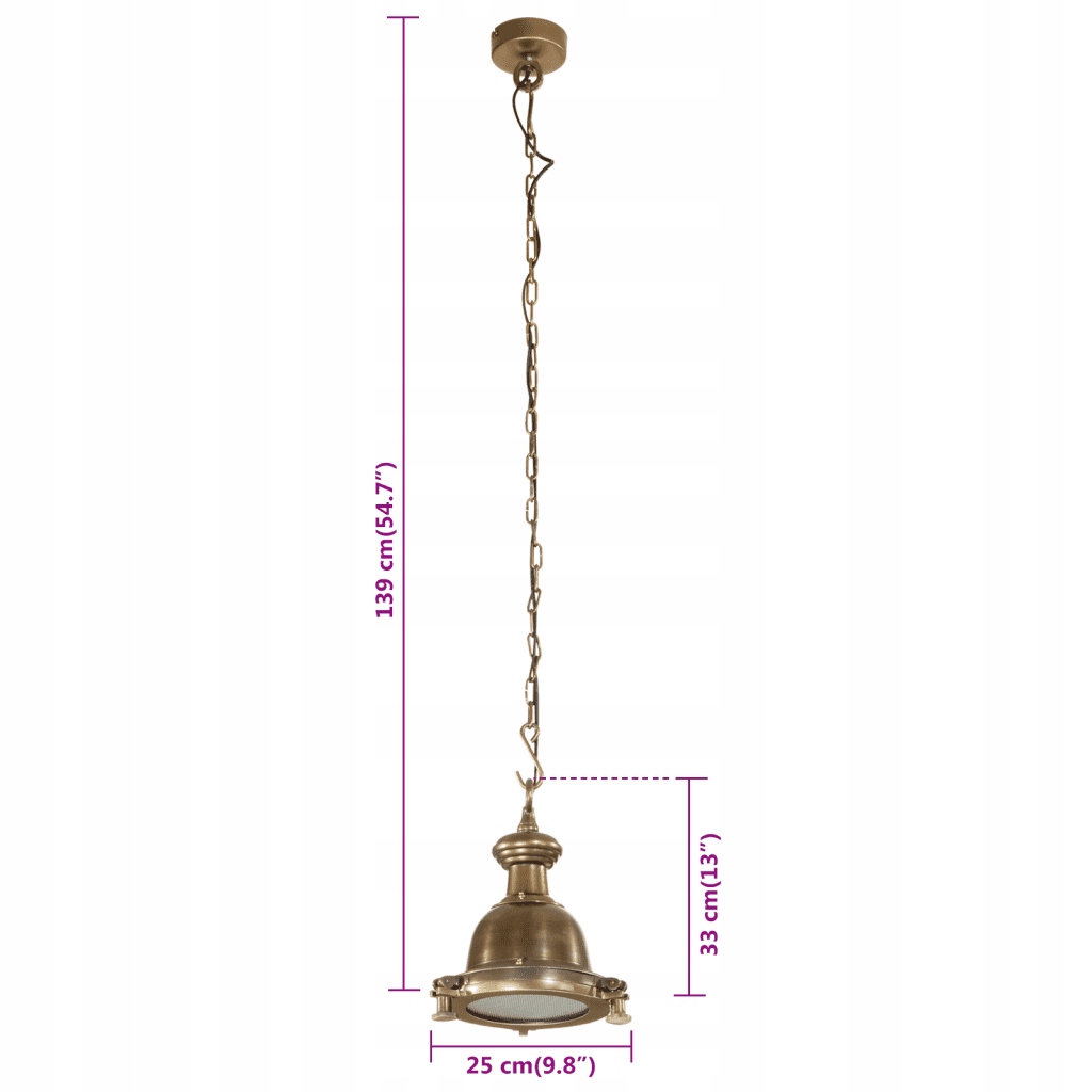 Lampa Wisząca Mosiądz 25x25x139 cm - Regulowana - E27 - 40W