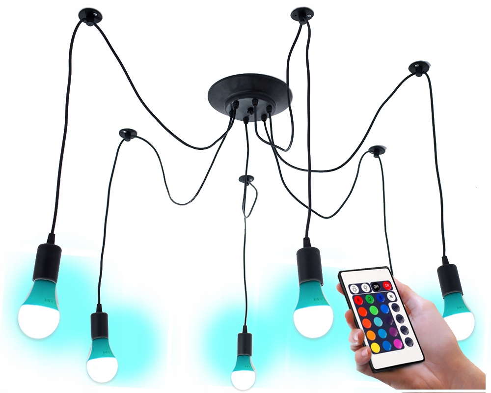Lampa Wisząca Zwis Kabel z ŹRÓDŁEM ŚWIATŁA 6x RGB