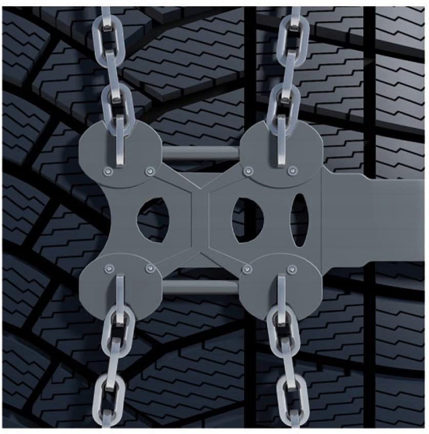 - Набір включає набір 2 ланцюги (на 1 вісь), набір адаптерів для гаек 17, 19, 21 і 22 мм, 2 ремонтних ланки, практична сумка, фольговані рукавички