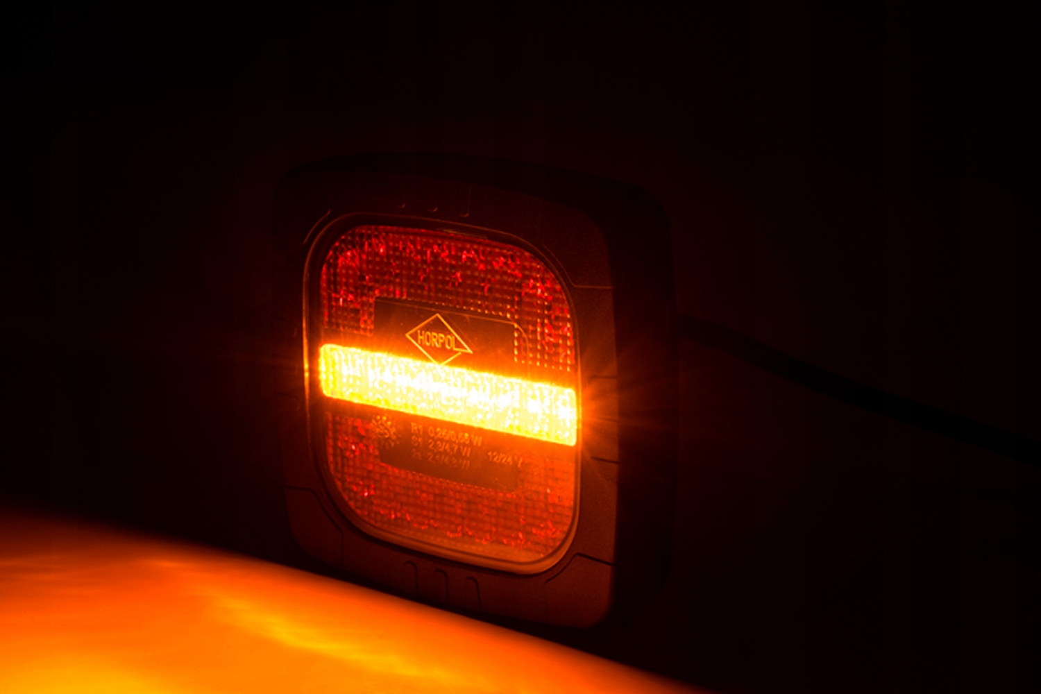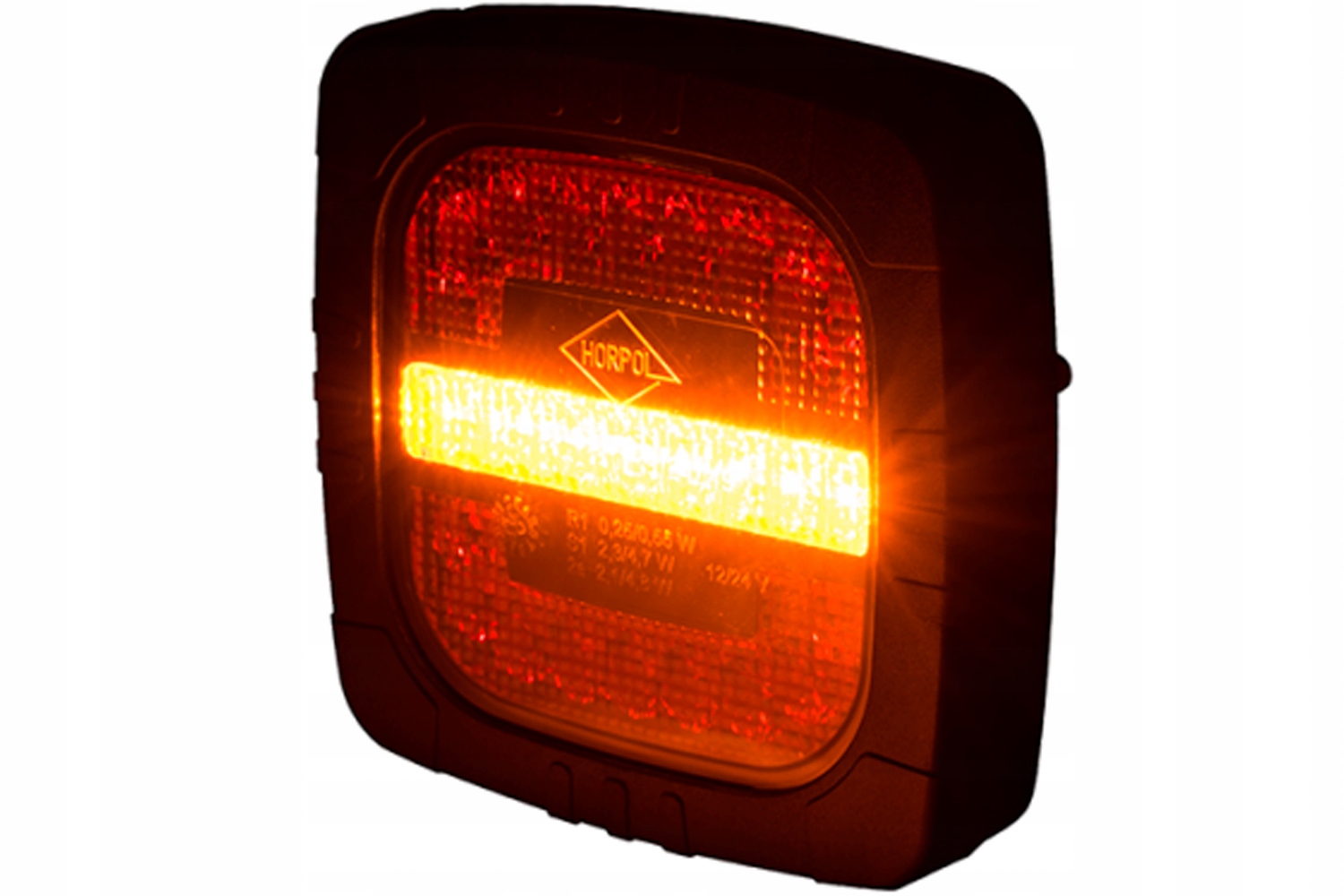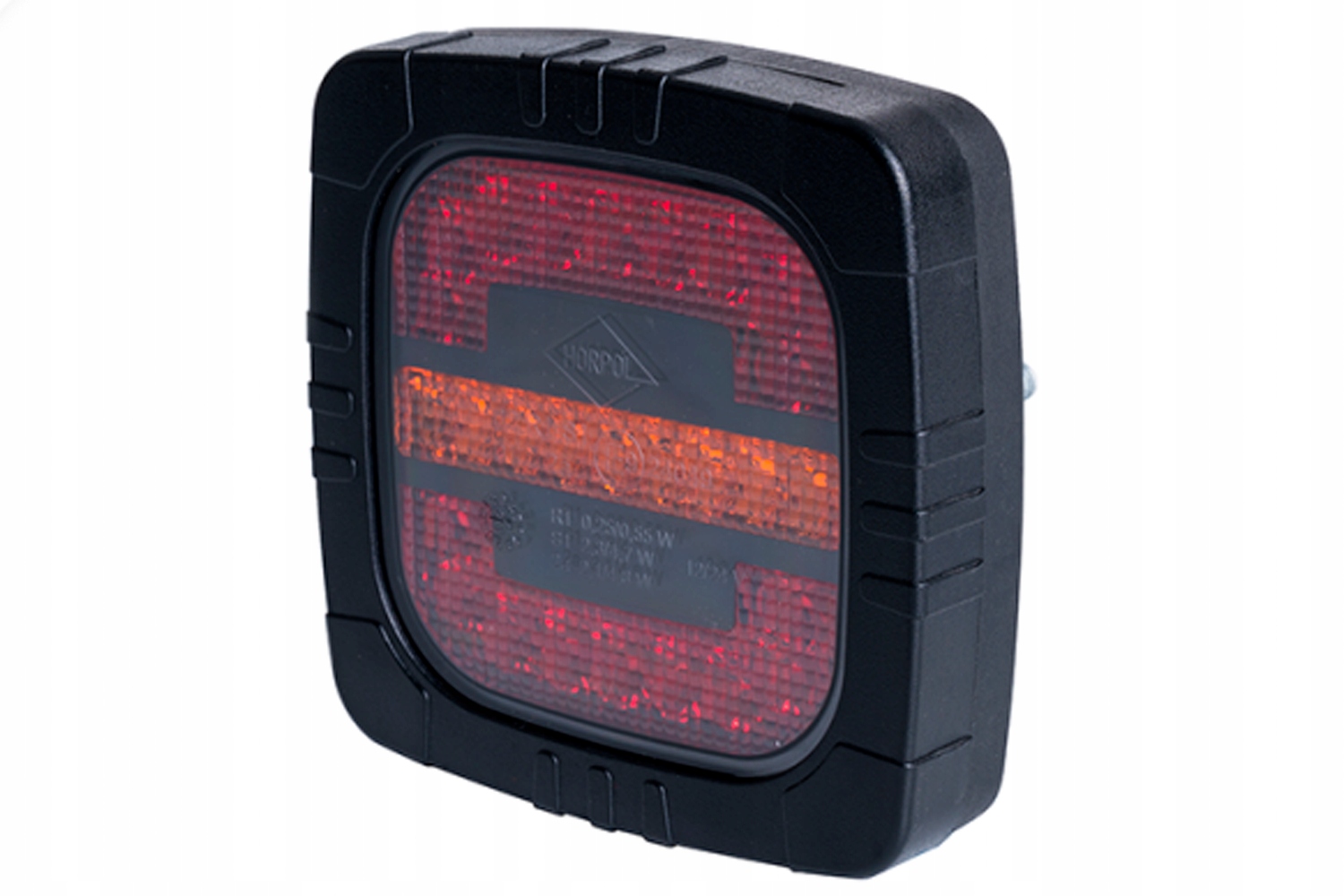 Трьохфункціональний універсальний задній світлодіодний ліхтар виробництва польської компанії Horpol. Лампа працюватиме від 12 В або 24 В. Укомплектований кабелем 4x0,5 мм2 довжиною 1 метр. Як комбінована лампа виконує 3 функції: