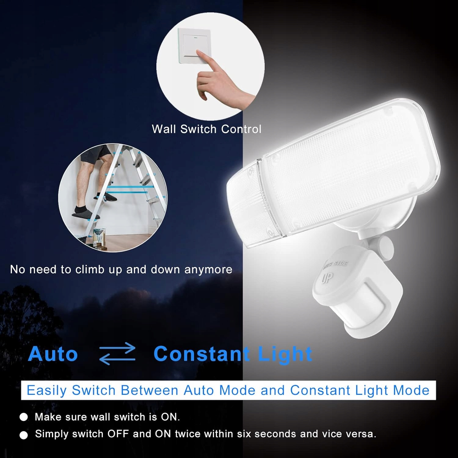 Просте встановлення та універсальне використання: цей налобний ліхтар має найзручніший спосіб встановлення. Лампа безпеки живиться змінним струмом і складається з 4 простих кроків: 1. Встановіть монтажну пластину. 2. Підключіть лампу. 3. Встановити лампу. 4. Запечатайте. Ви або електрик повинні дотримуватися вказівок у посібнику. Ці лампи часто використовуються для освітлення зовнішніх стін, терас, доріжок або інших відкритих ділянок, таких як під’їзди, гаражі, сади, сходи, двори тощо. Їх можна легко встановити в кутку, на стіні або під дахом.